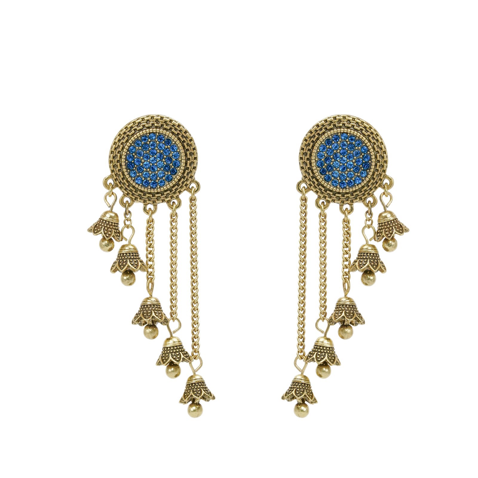 Metallic Diamond Studded Flower Tassel Earrings