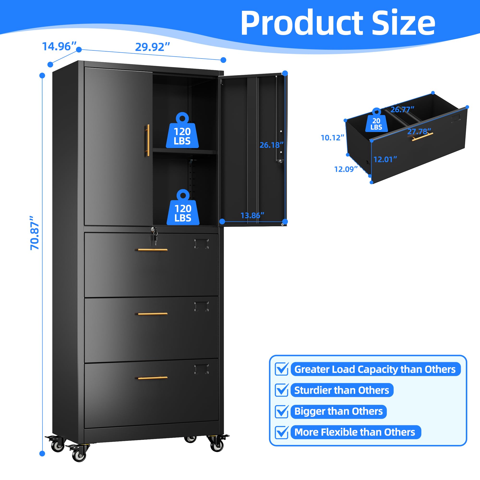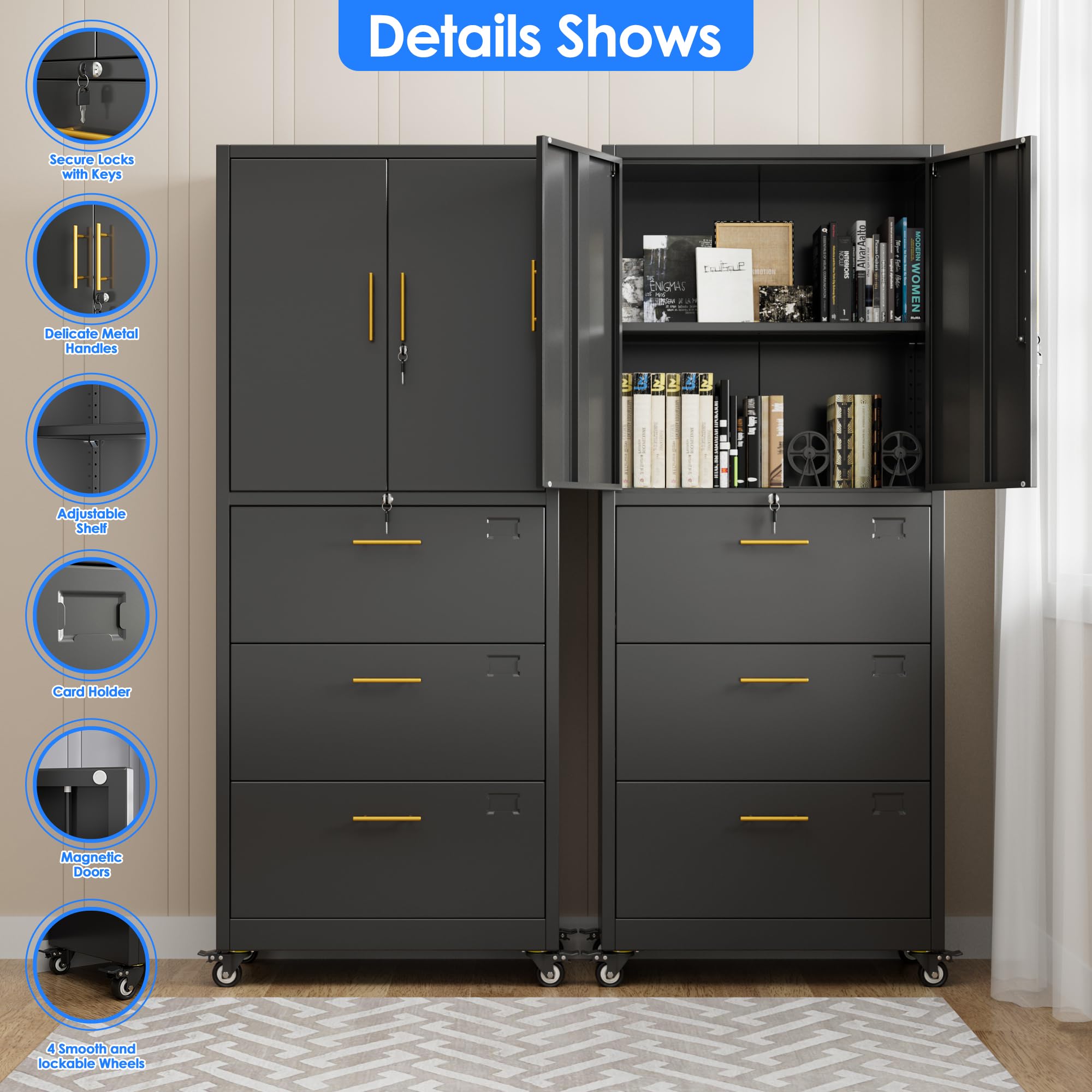 [Locking Design]:The steel storage cabinets uses a 3-point lock system, which further improves privacy. The down drawer is also equipped with a locking device, we also designed a card box to facilitate your storage of the distinction.This metal storage suitable for using in home offices, garages, utility rooms to store documents, tools and other items