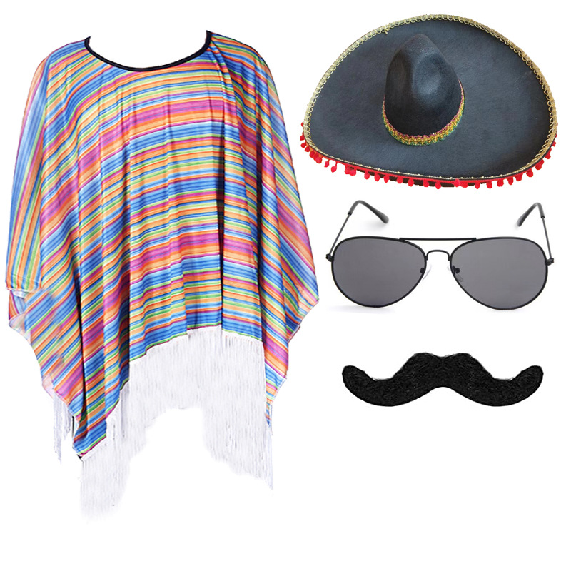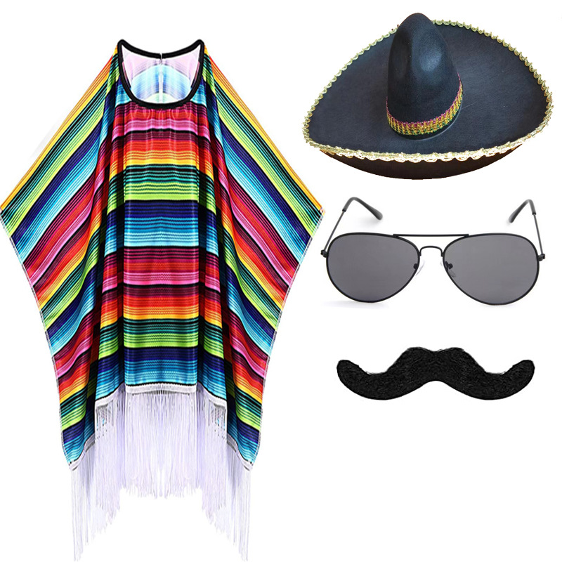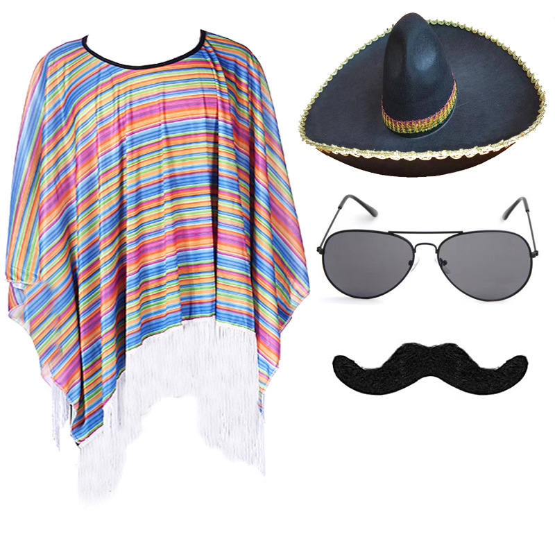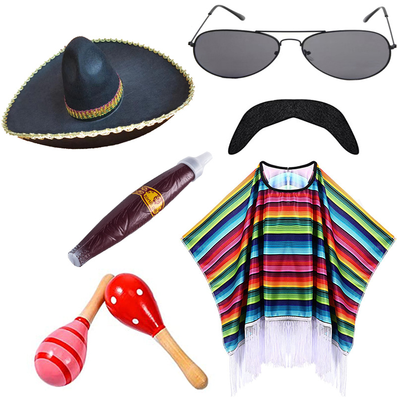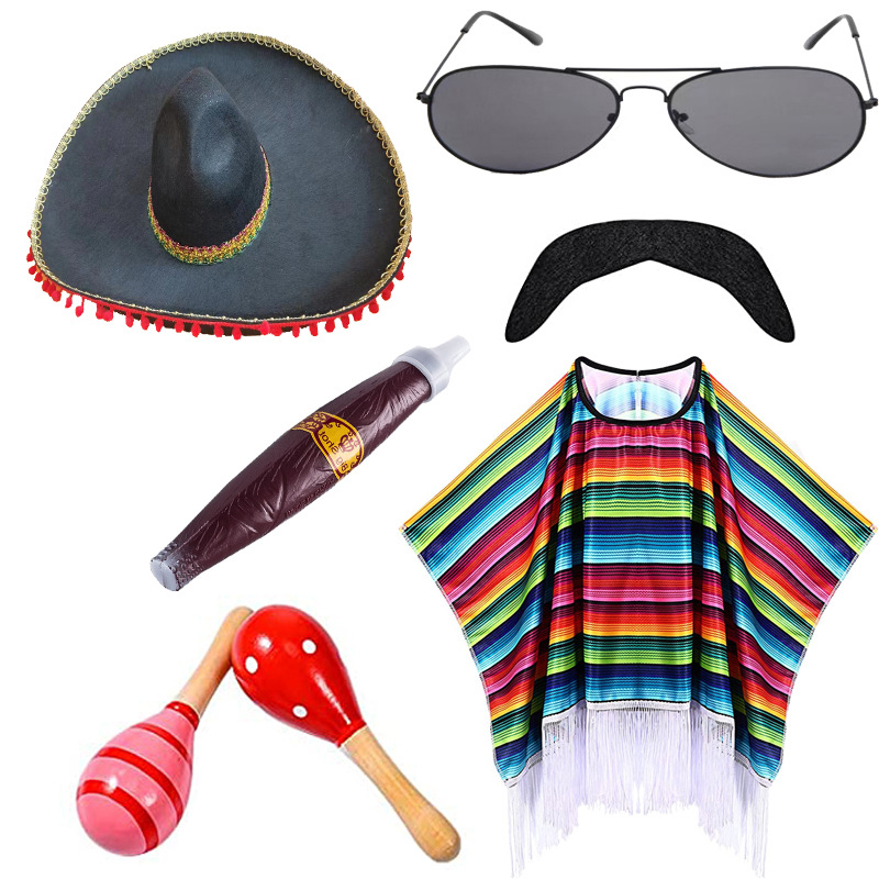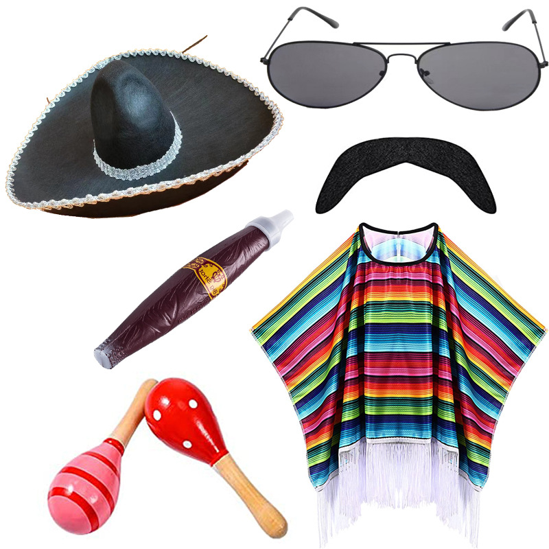 Color: adult shawl C sunglasses straw hat handlebar beard, adult shawl C sunglasses color hat handlebar beard, adult shawl C sunglasses fluffy ball cap handlebar beard, adult shawl C sunglasses Phnom Penh hat handlebar beard, adult shawl C sunglasses silver brim hat handlebar moustache, children's shawl sunglasses straw hat handlebar moustache, adult cloak type A, children's shawl, adult cloak type B, adult cloak type C, straw hat 35cm children, straw hat 43cm adult, color cap 48cm adult, black hair ball 50 * 55cm, black silver edge 50 * 55cm, black gold edge 50 * 55cm, sunglasses, sand hammer 12cm (two), sand hammer 20cm (two), cigar, Beard