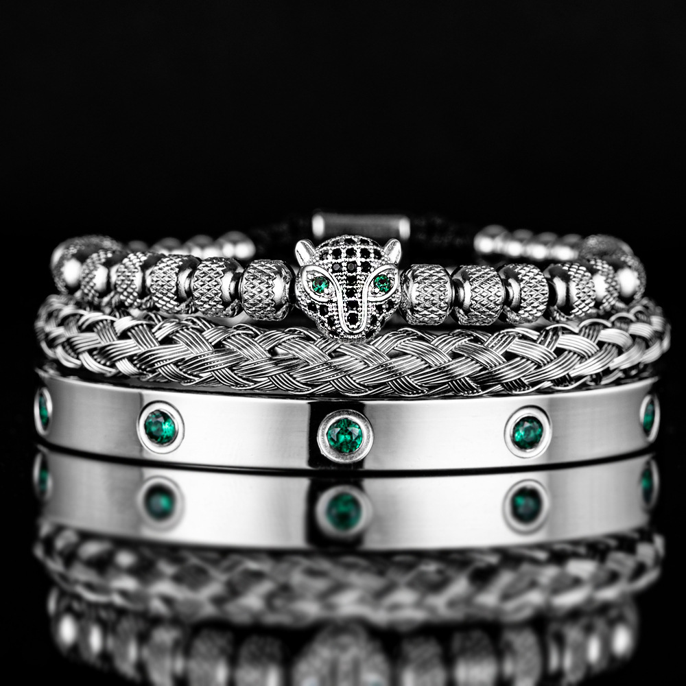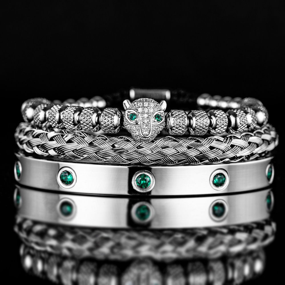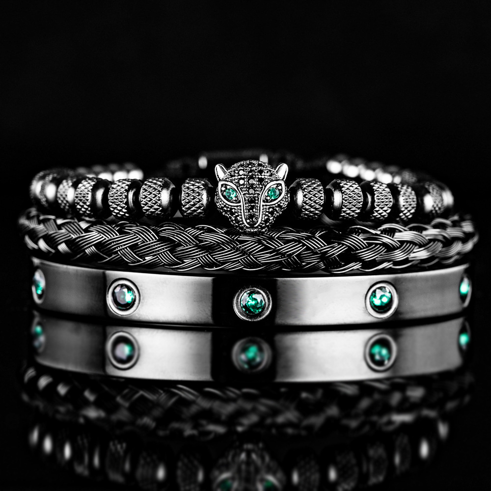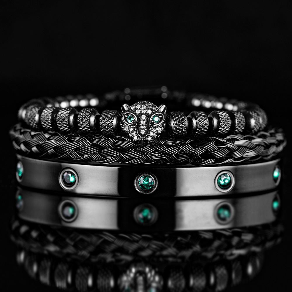Micro Inlaid Leopard Head Bracelet Set