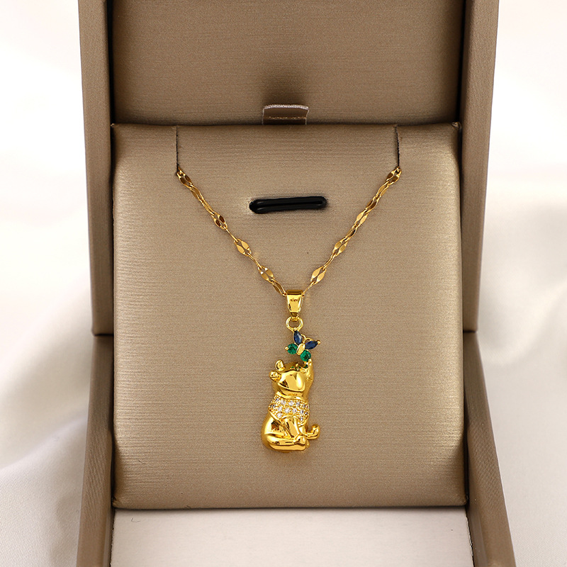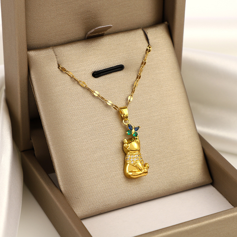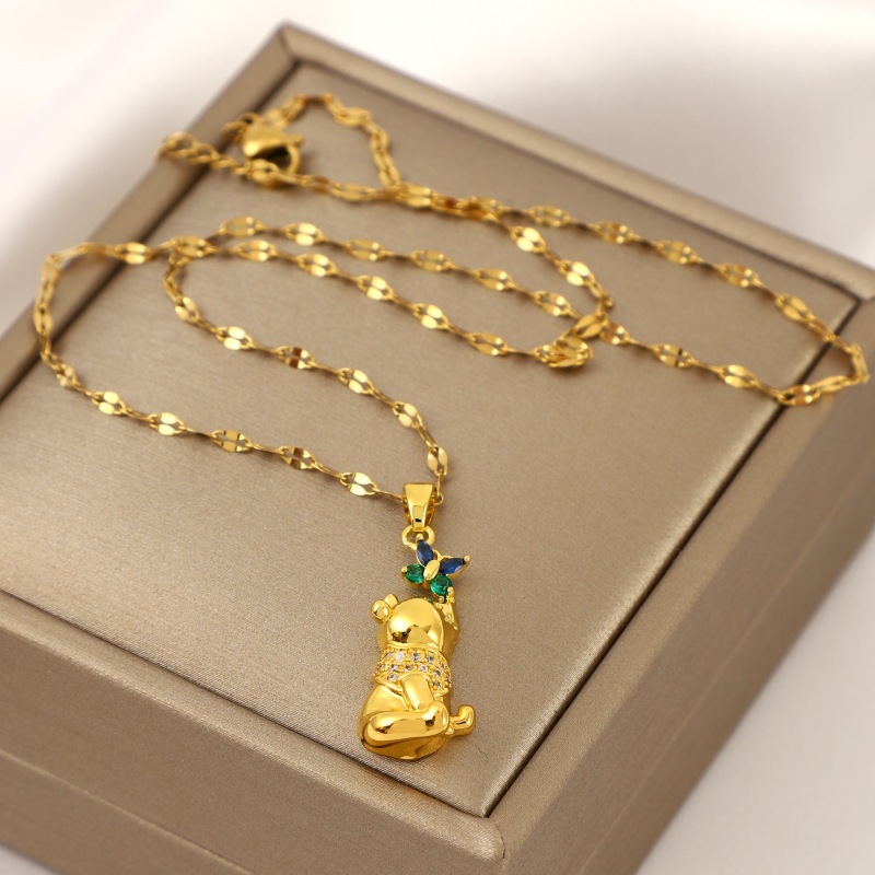 Micro Inlaid Zircon Bear Butterfly Temperament Entry Lux Necklace