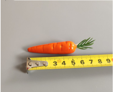 Size: 5.5cm carrot plus leaves 7 cm, diameter is about 1.5 cm.