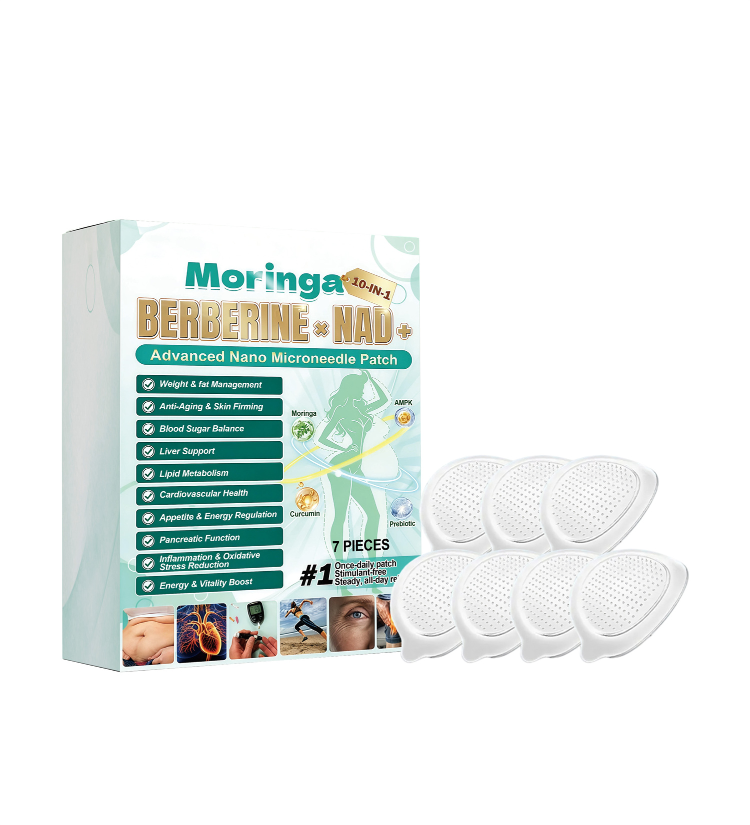 Moringa seed extract, berberine, nicotinamide adenine dinucleotide, curcumin, fructooligosaccharide, allantoin.