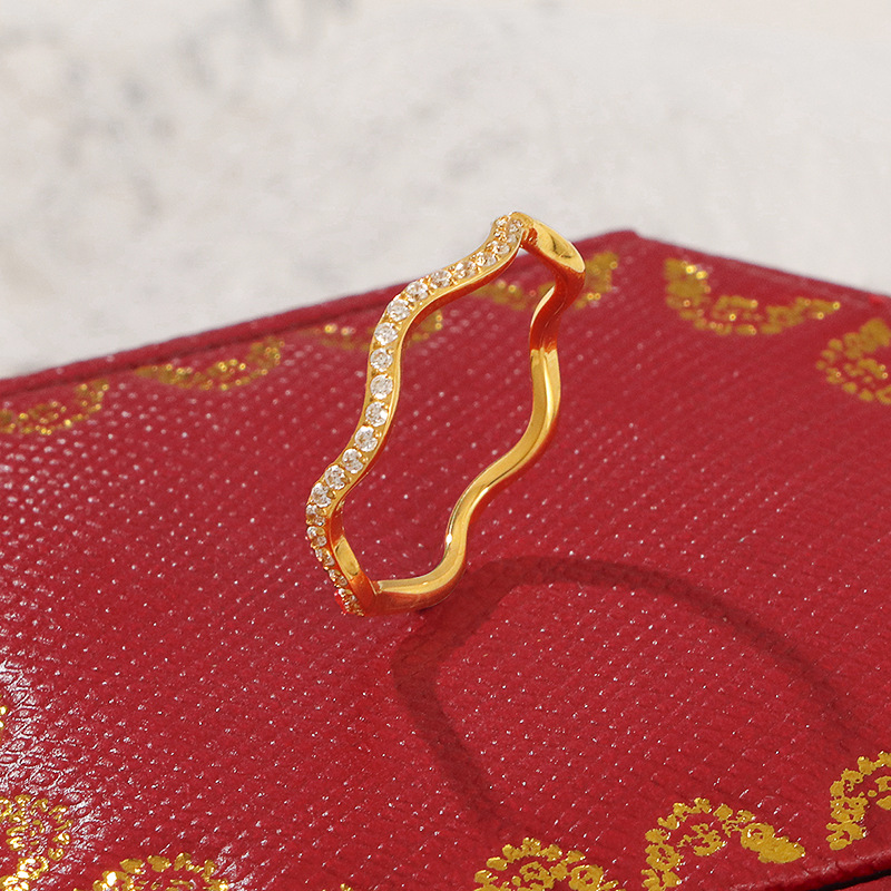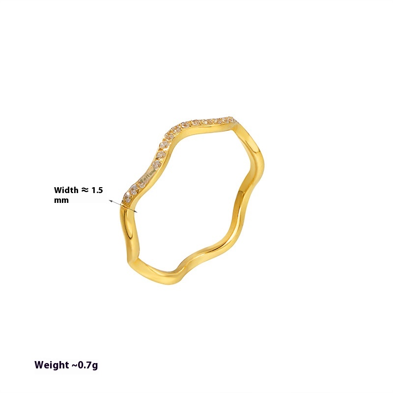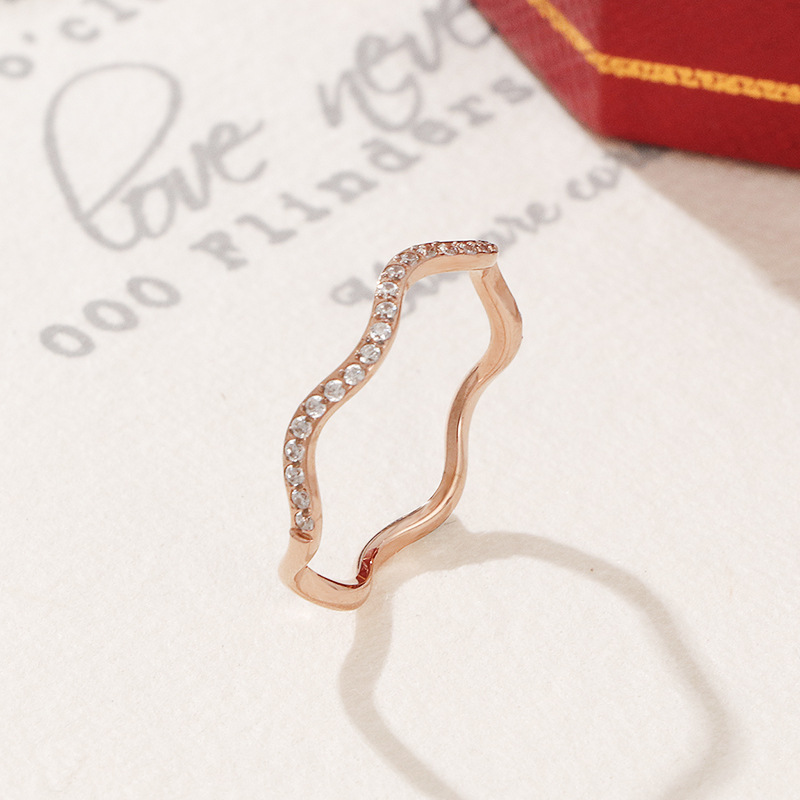 Micro Rhinestone Wave Ring Female Titanium Steel 18K Gold Plating