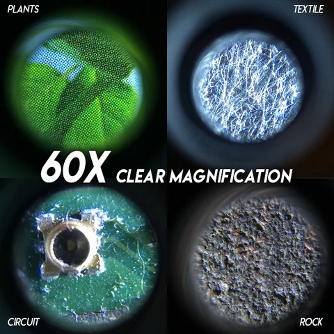 Provides high-resolution 60X magnification with adjustable focus. Clearly show magnified structures on the phone screen.
