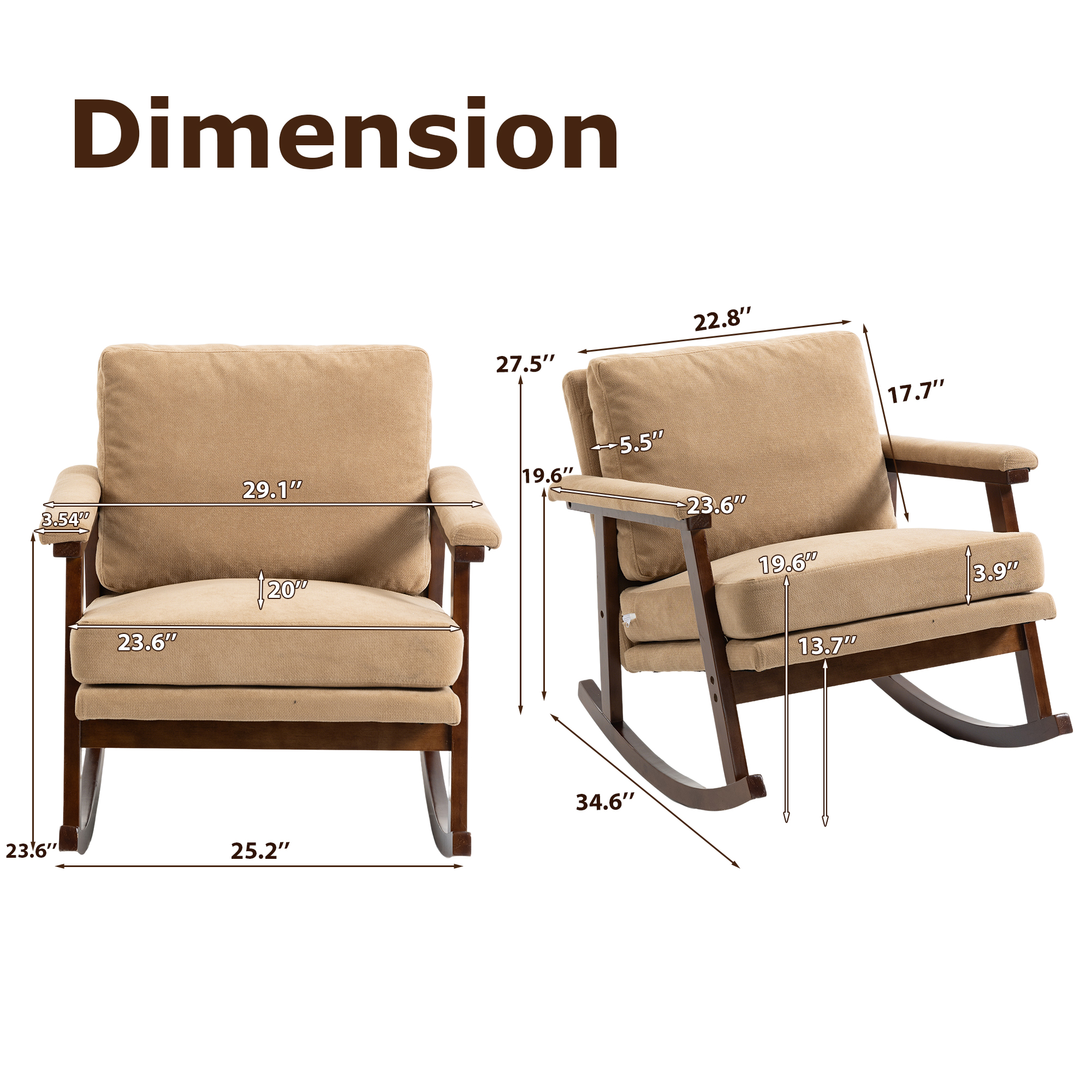 • The backrest & cushion of accent rocking chair is filled with high density sponge, which is very soft to sit. And the waist cushion also can relieve the pressure on your back and make you feel comfortable.