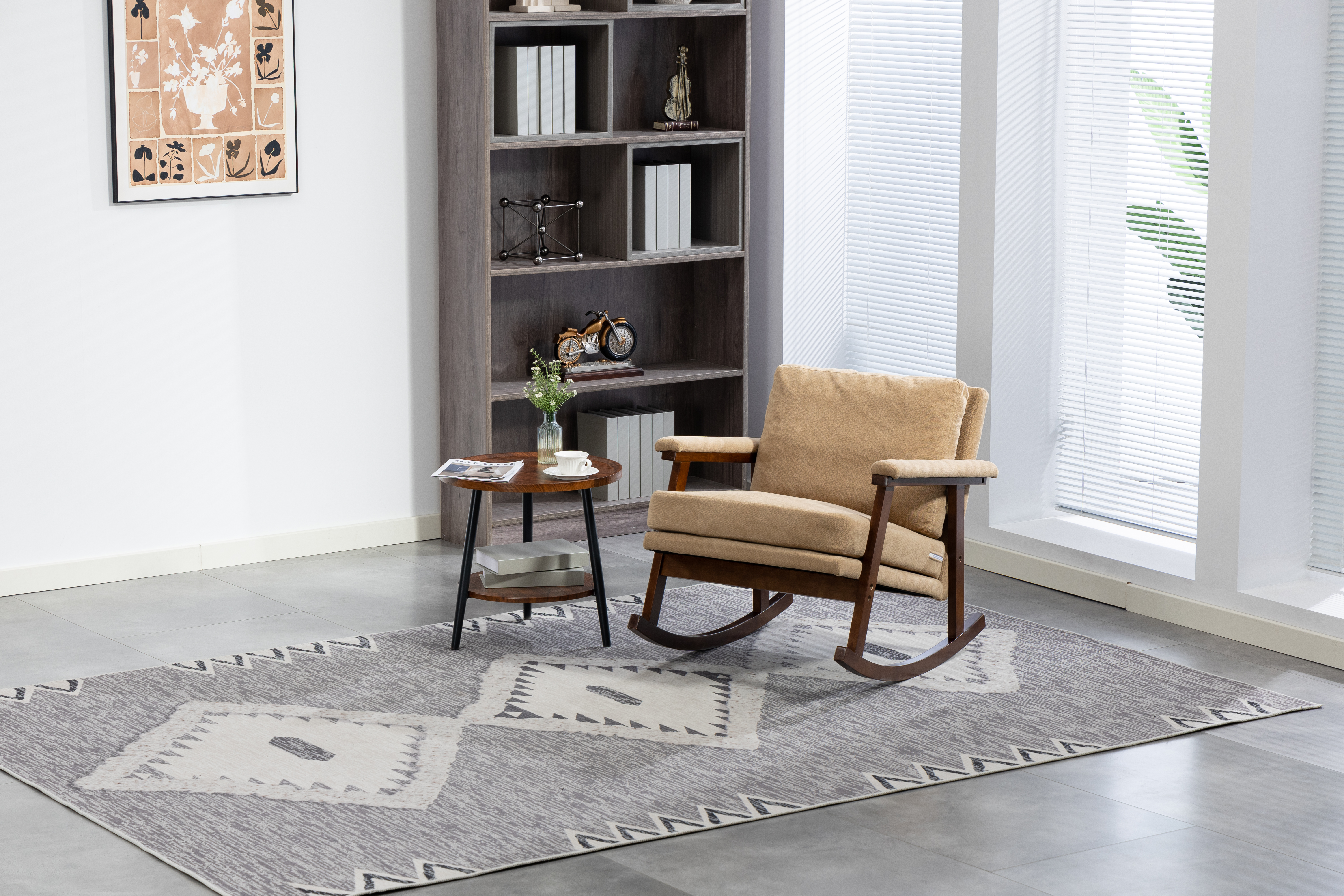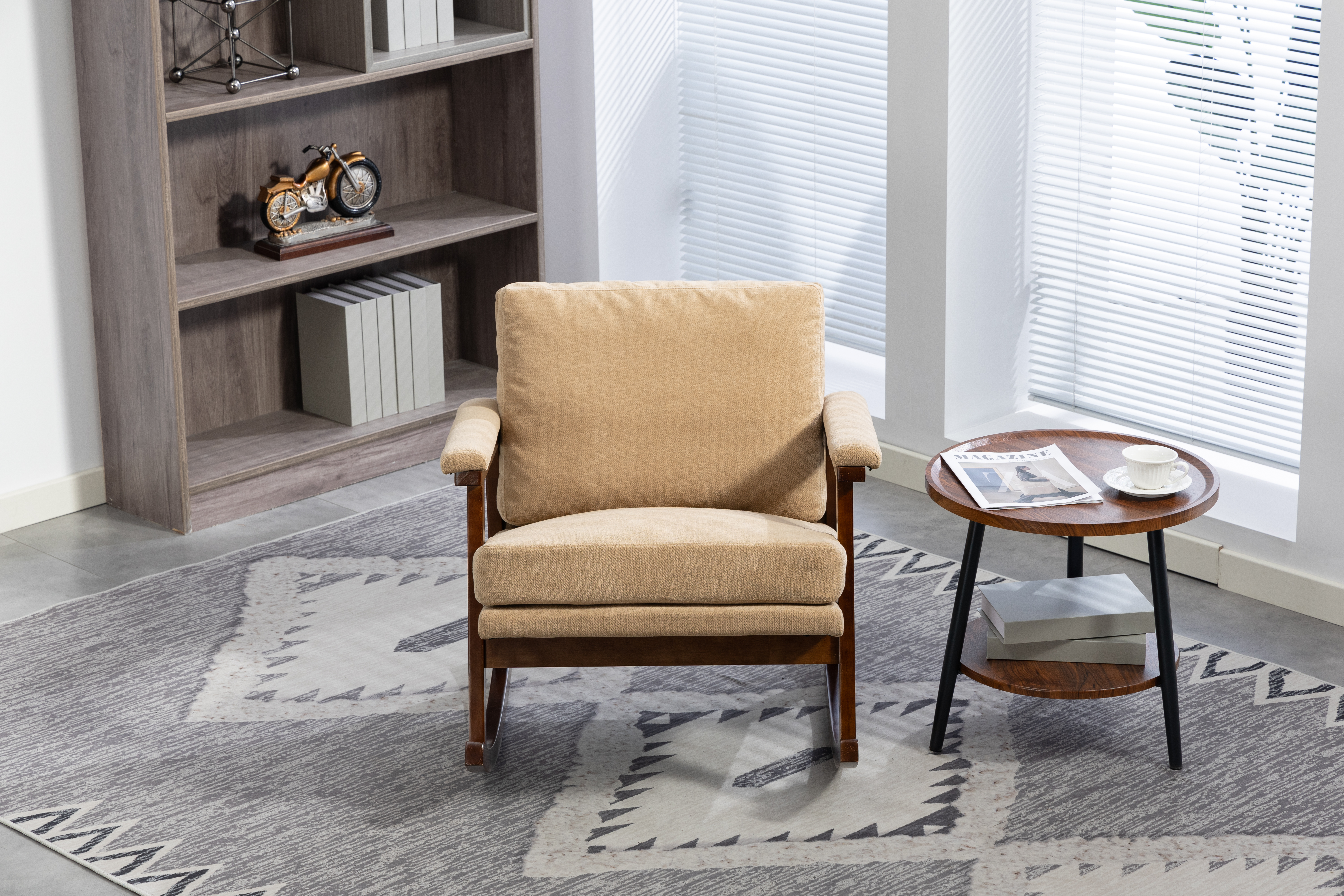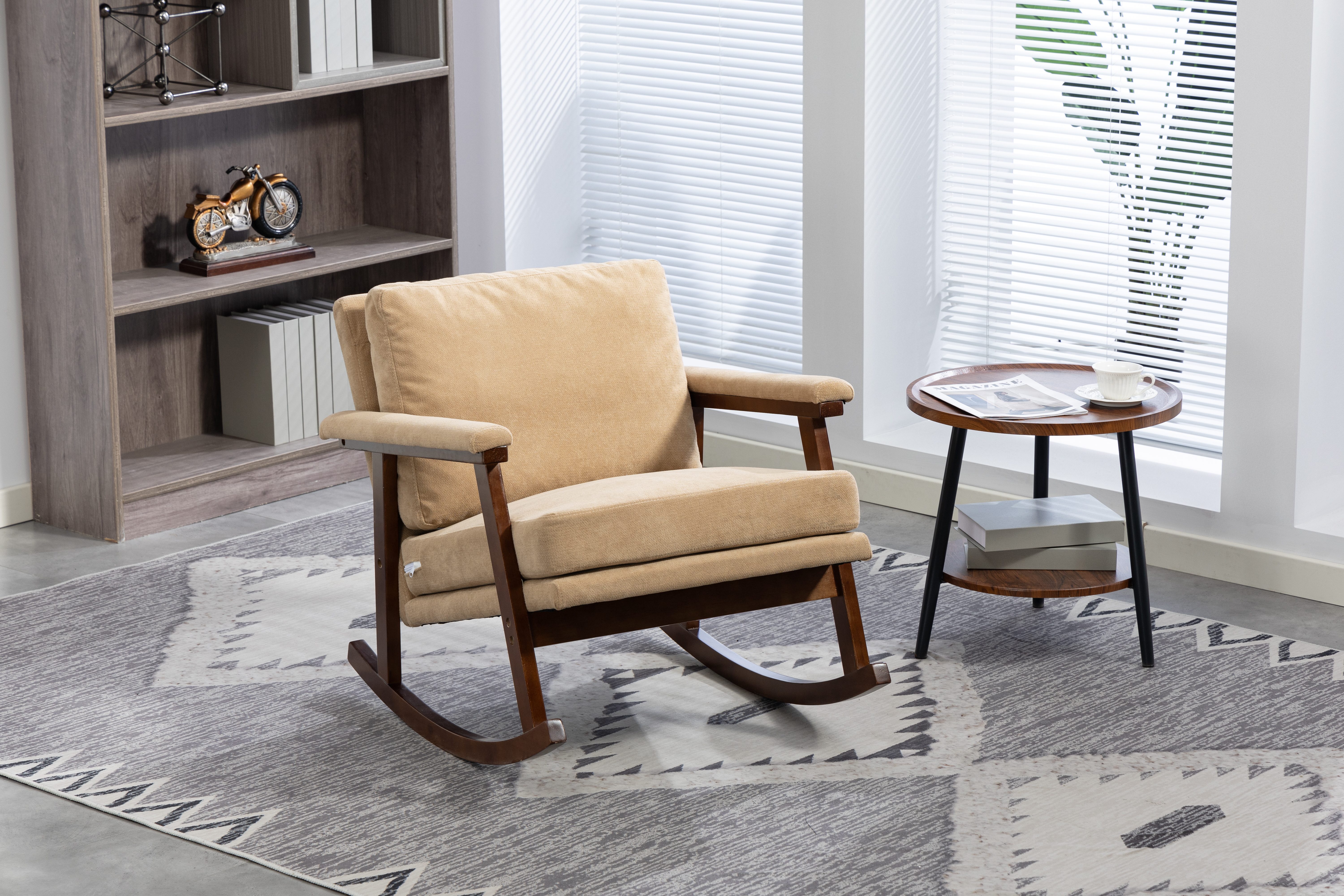Product Name:Mid Century Modern Accent Chair ,rocking chair with Wood Frame, Upholstered Living Room Chairs , Reading Armchair for Bedroom Sunroom