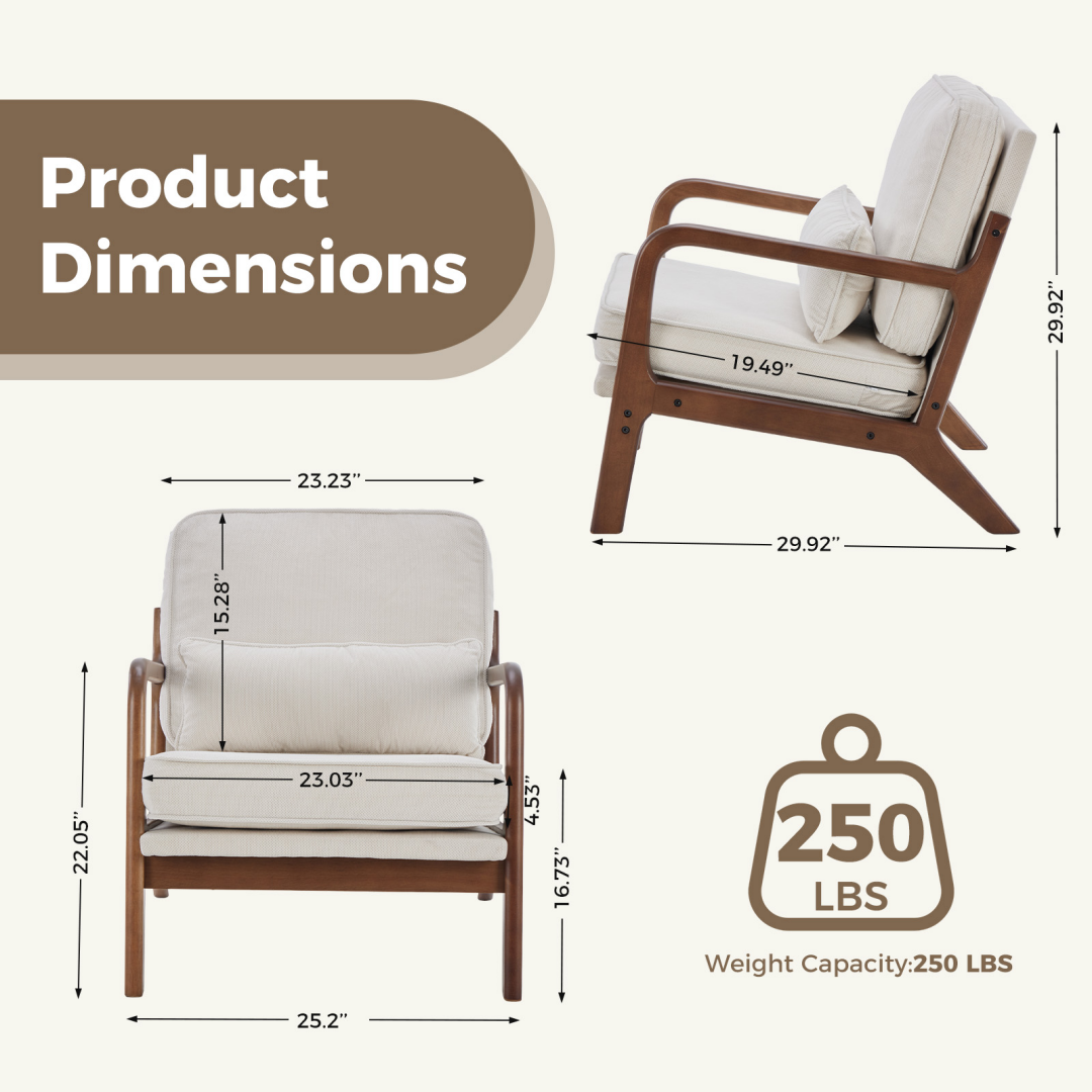 【Mid Century Style】This accent chair has a modern design and a simple and elegant style that suits any style of decoration in your home. You can choose from 3 colors to find the one that suits your home. The additional cushions also make the reading chair more comfortable and beautiful.