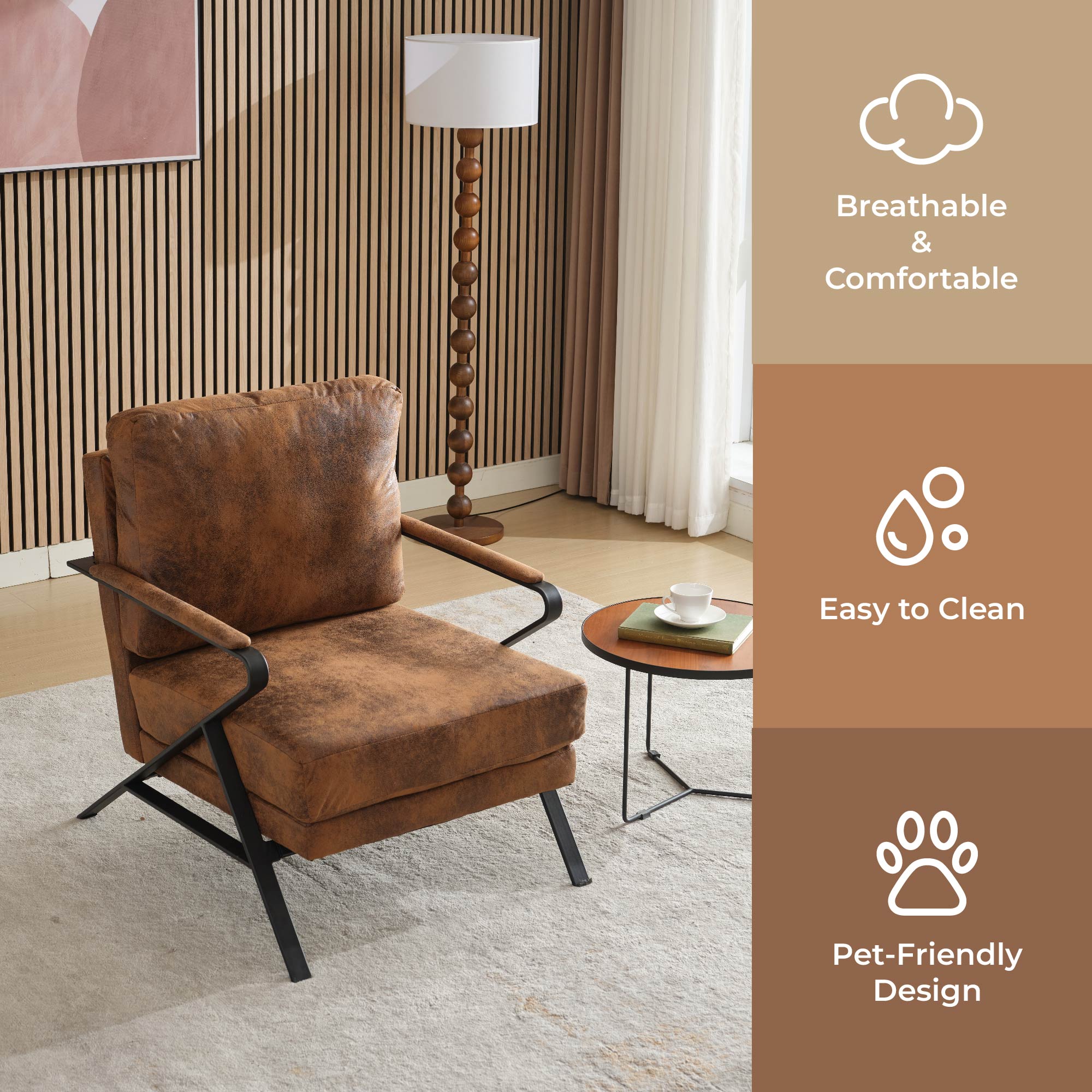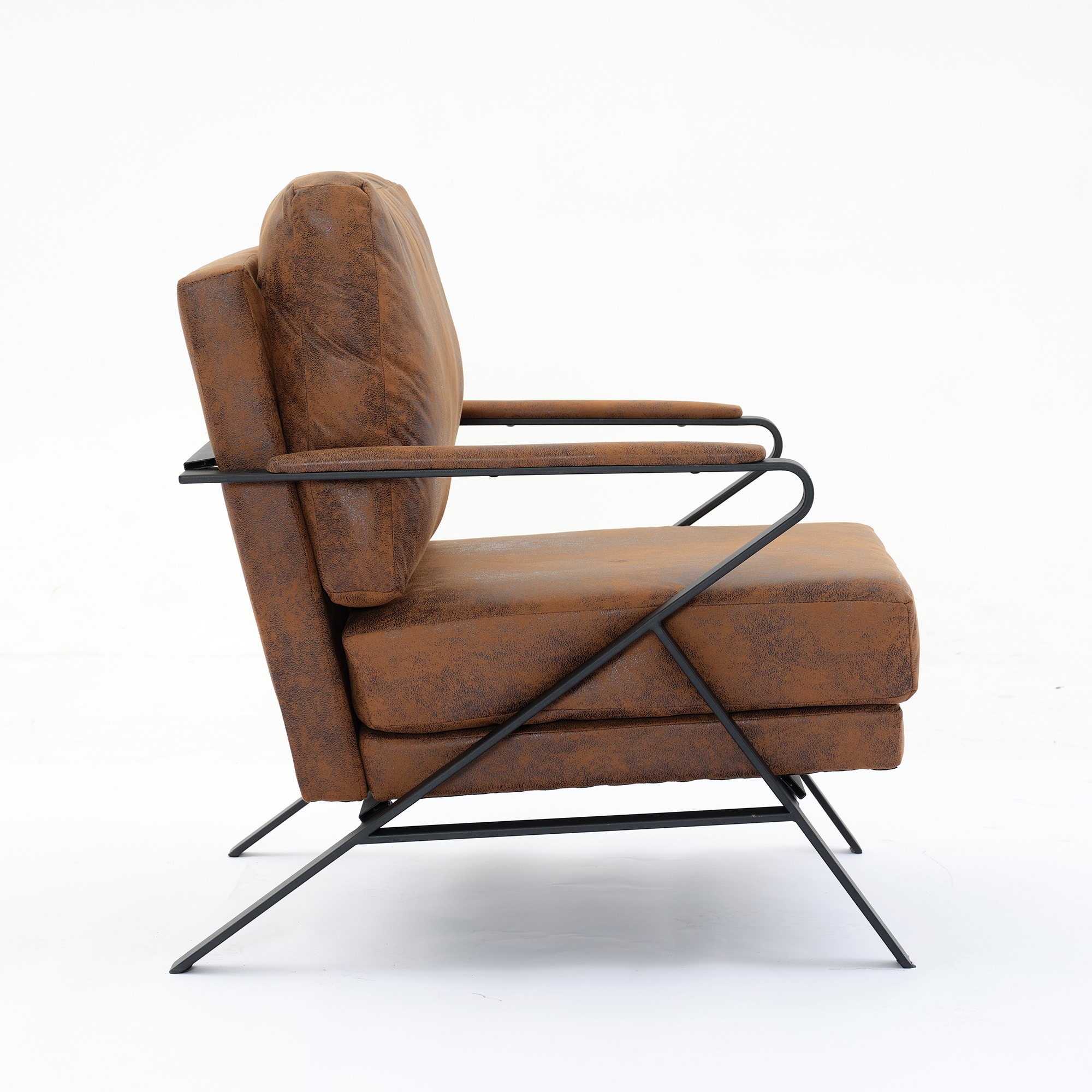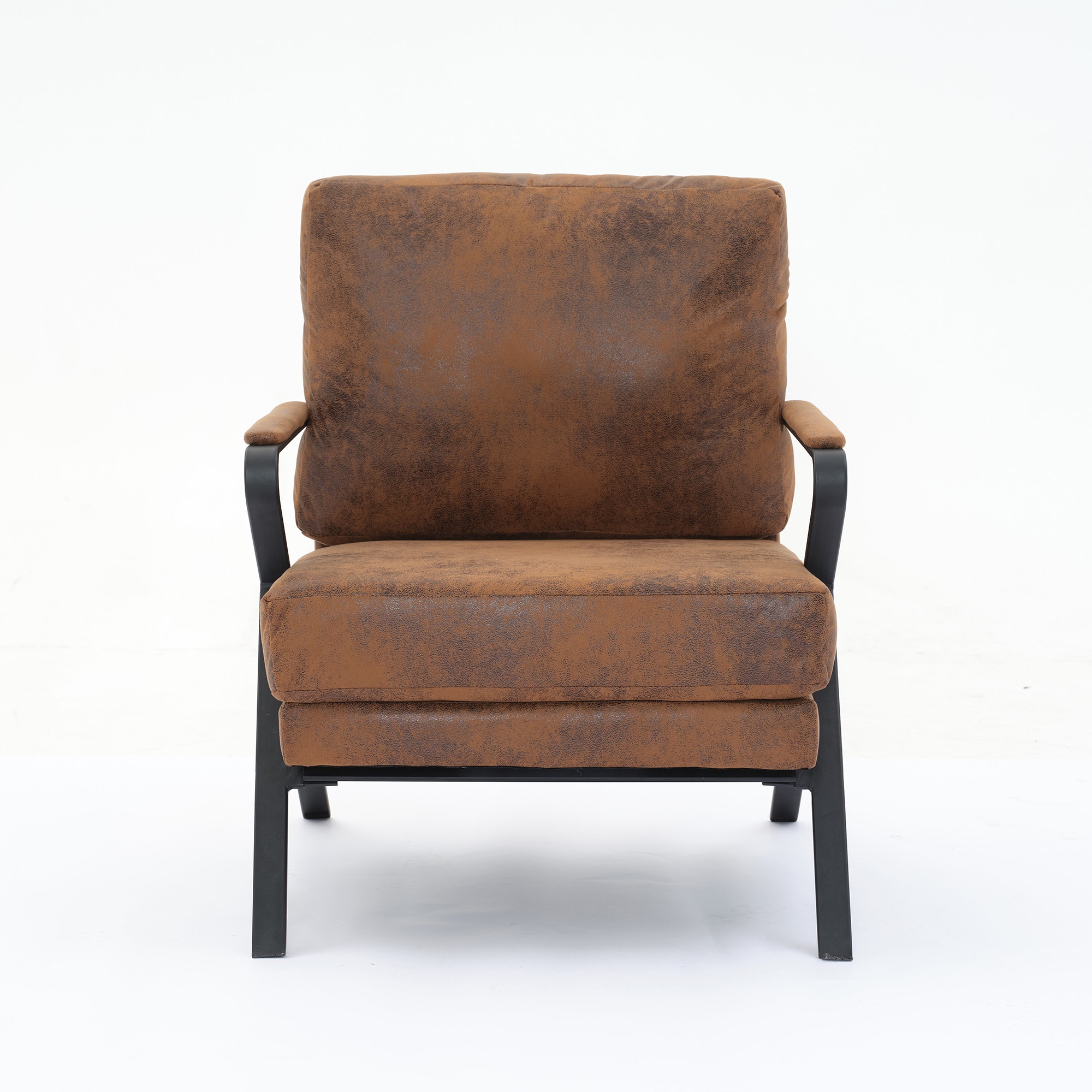 Product Name: Mid-Century Modern Chair Upholstered Lounge Arm Chair with Iron Frame and Thicker Cushion for Living Room, Reading, Balcony,Brown