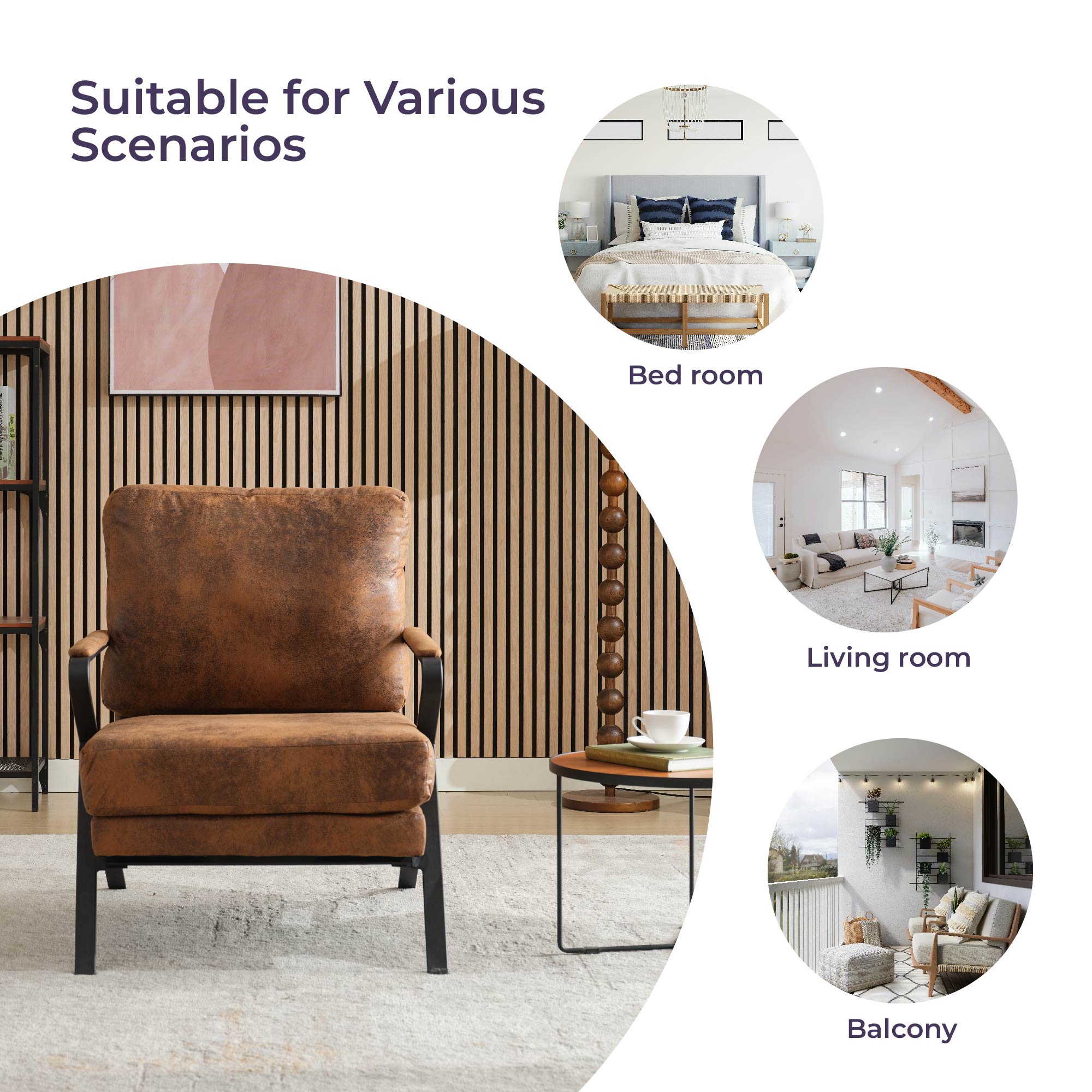【Versatile Use】: Perfect for various settings, this leisure chair is ideal for watching videos, playing games, reading, or relaxing by the fireplace. It fits seamlessly into living rooms, bedrooms, balconies, and entryways, enhancing comfort and style wherever it is placed.