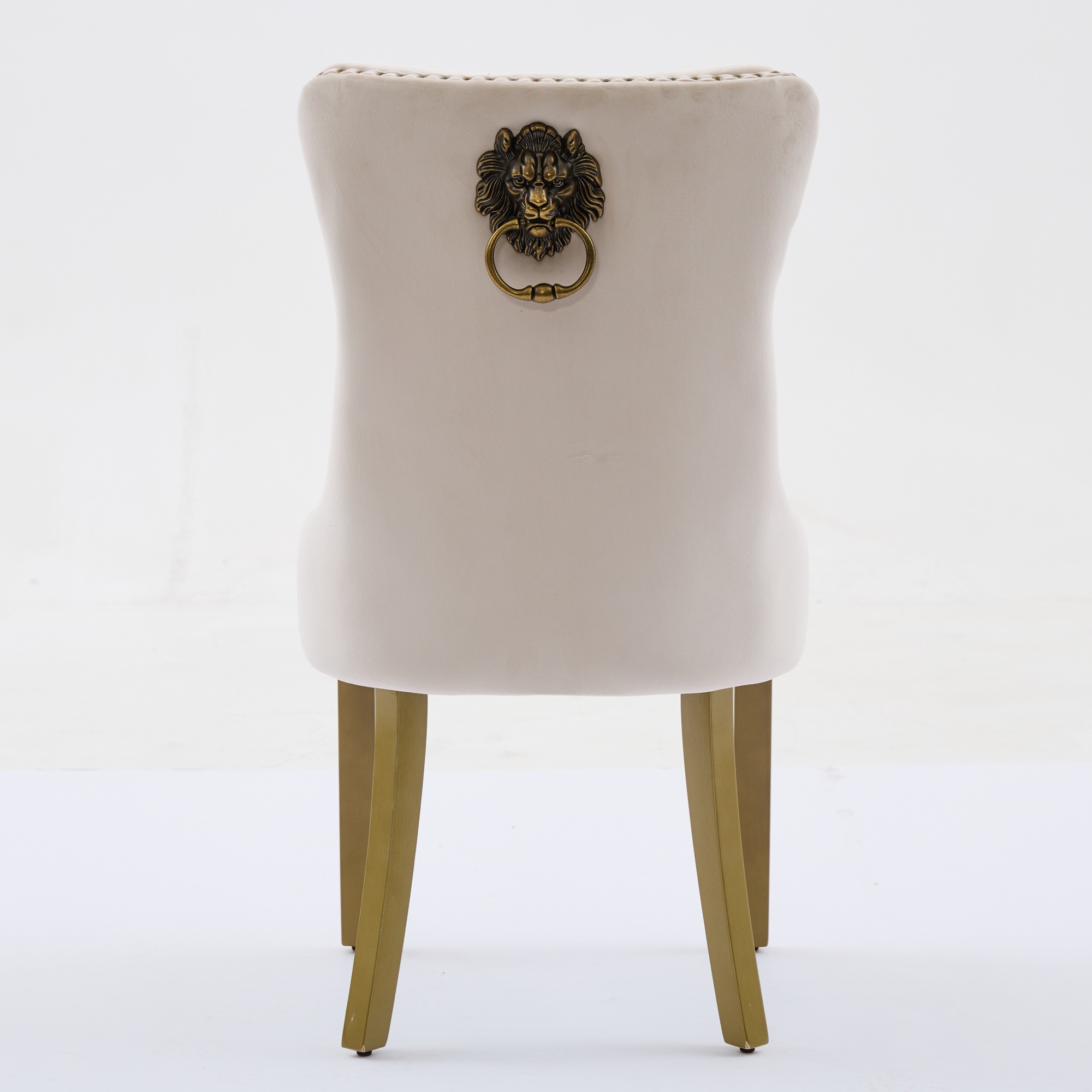 Product Name:Mid-Century Modern Chairs with Lion Head Pull Ring,High-end Tufted Solid Wood Contemporary Velvet Upholstered Dining Chair with Golden Wooden Legs Nailhead Trim 2-Pcs Set,Beige,SW1201BG