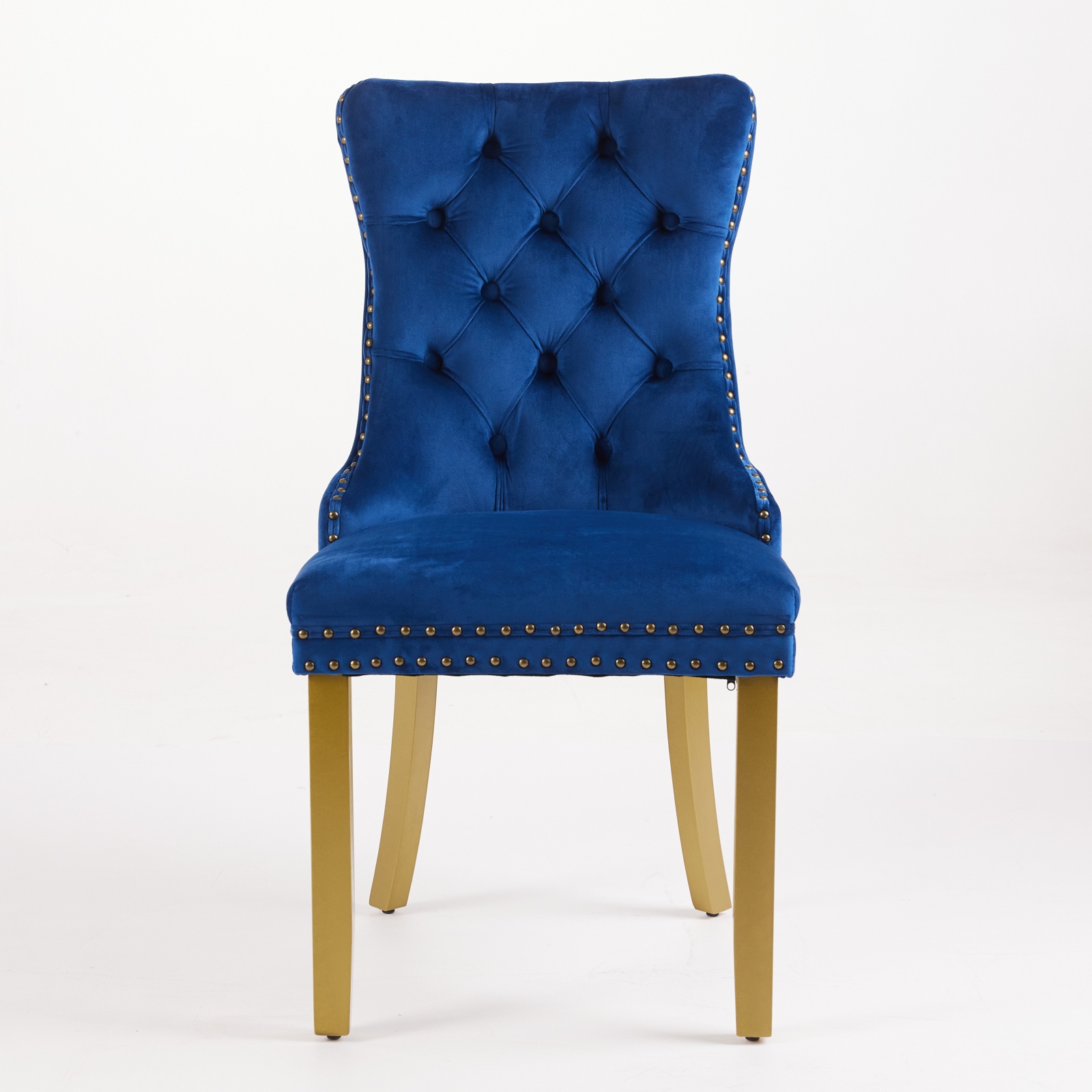Product Name:Mid-Century Modern Chairs with Lion Head Pull Ring,High-end Tufted Solid Wood Contemporary Velvet Upholstered Dining Chair with Golden Wooden Legs Nailhead Trim 2-Pcs Set,Blue,SW1201BL