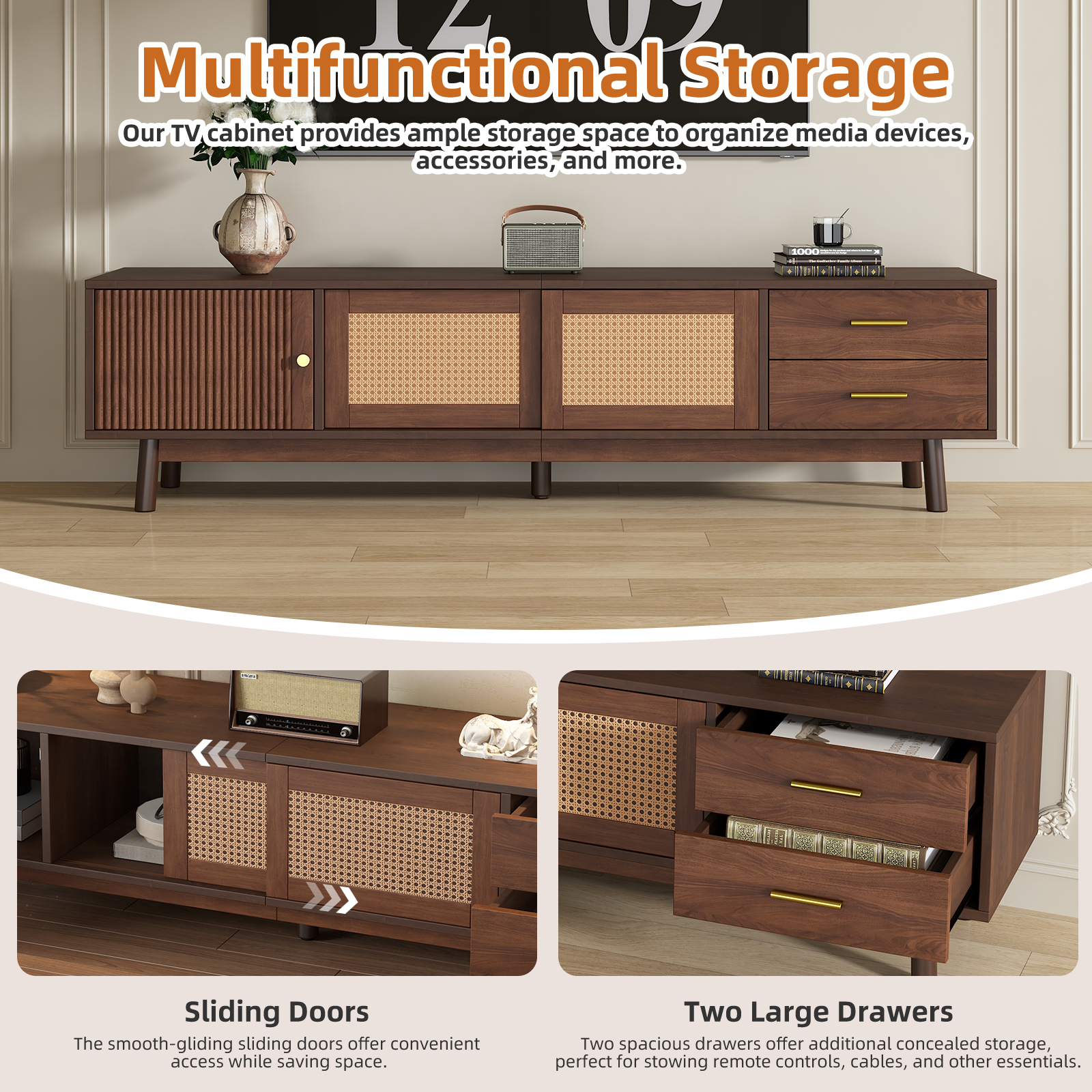 Product Name:Mid Century Modern TV Stand for 80" TVs, Entertainment Center with Sliding Doors and Drawers, TV Table with Storage for Living Room, Bedroom