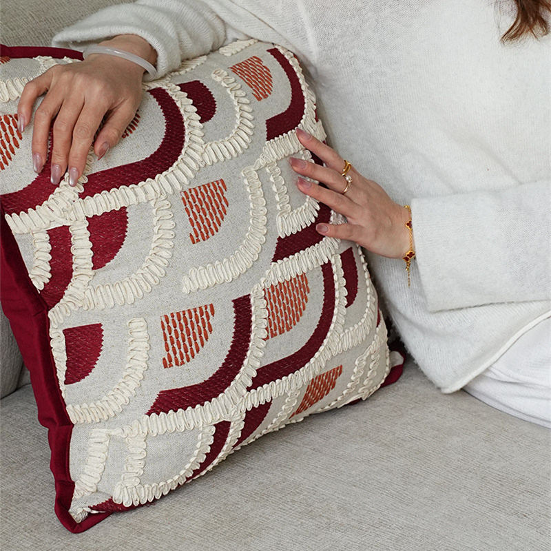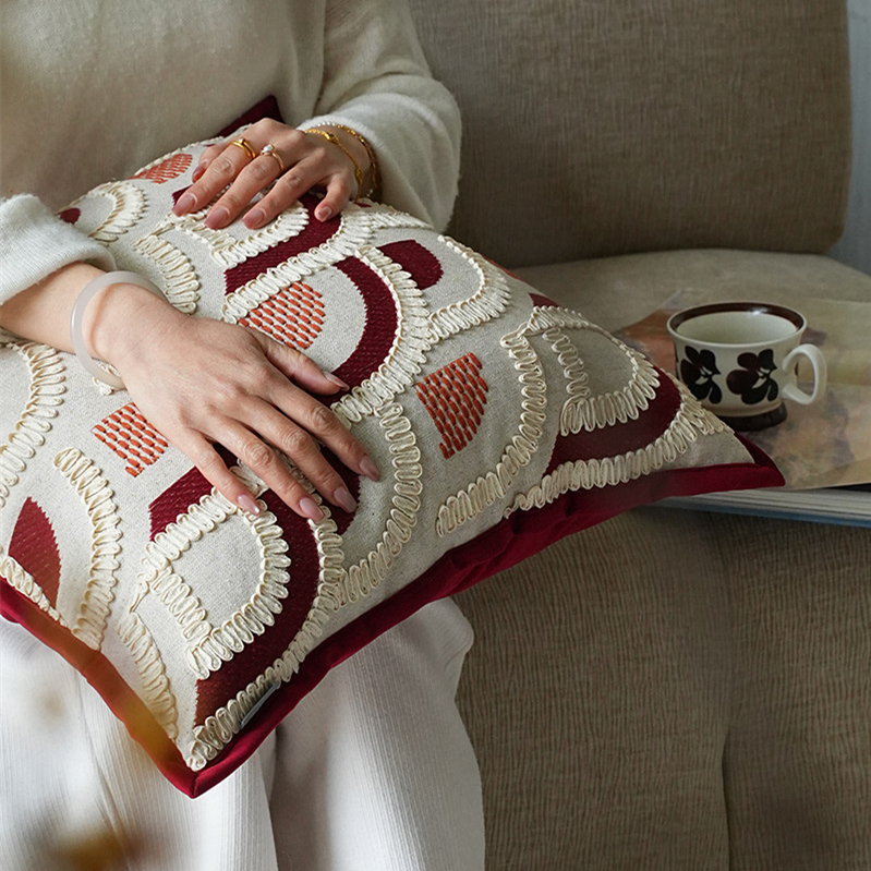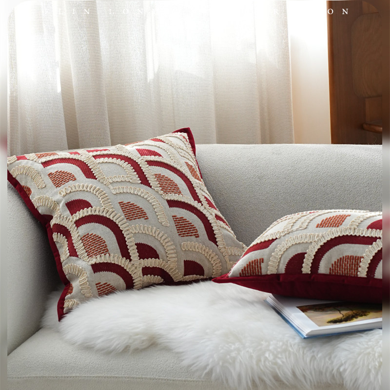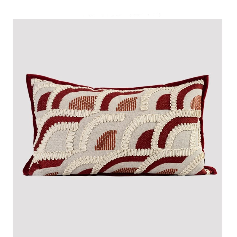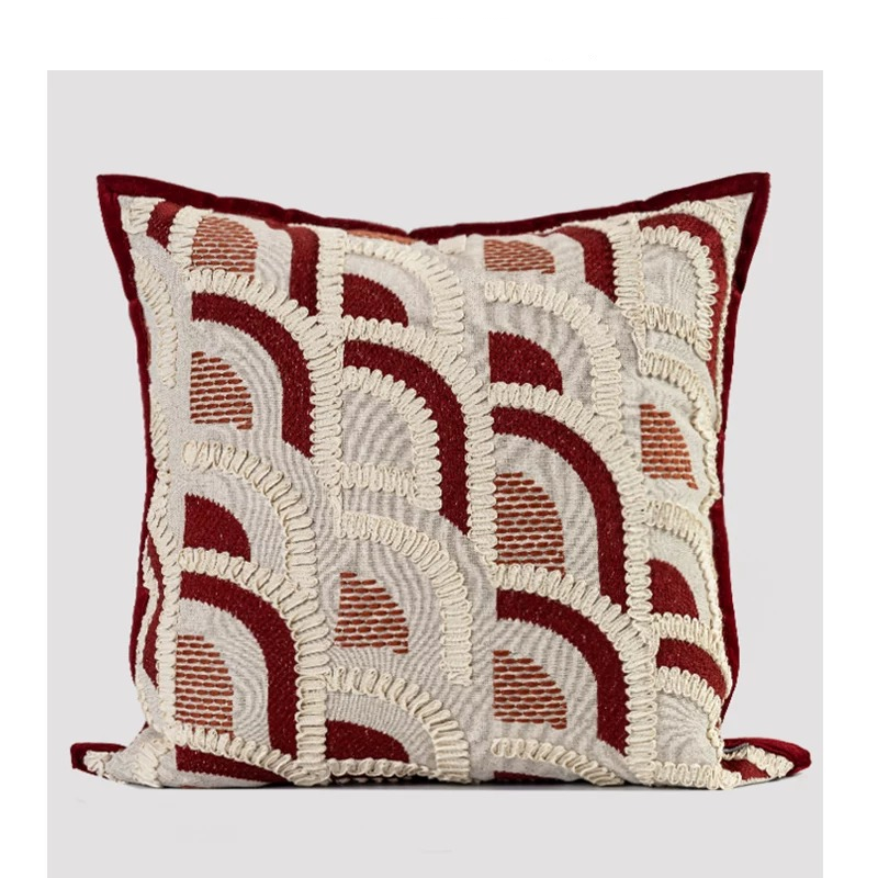 Mid-Century Wabi-Sabi Embroidered Red Jacquard Throw Pillow For The Home