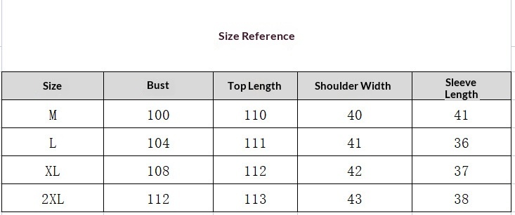 Sizes: M, L, XL, 2XL