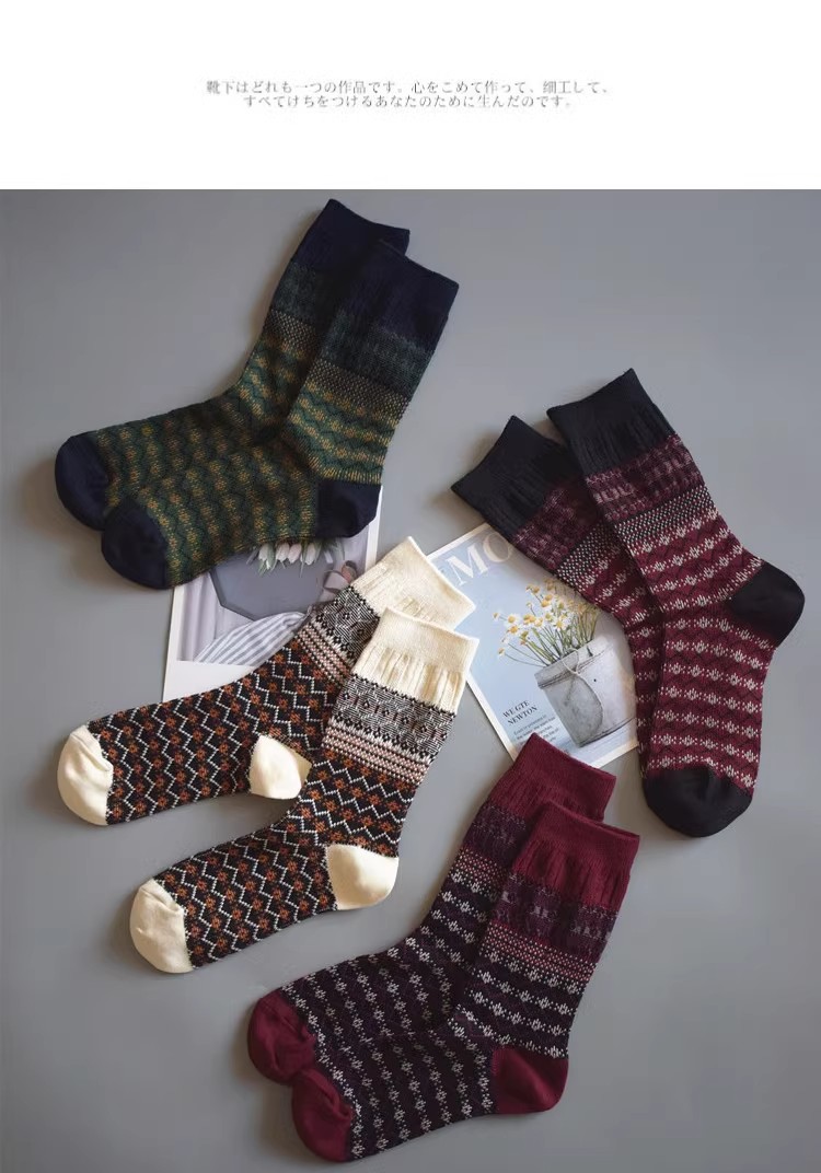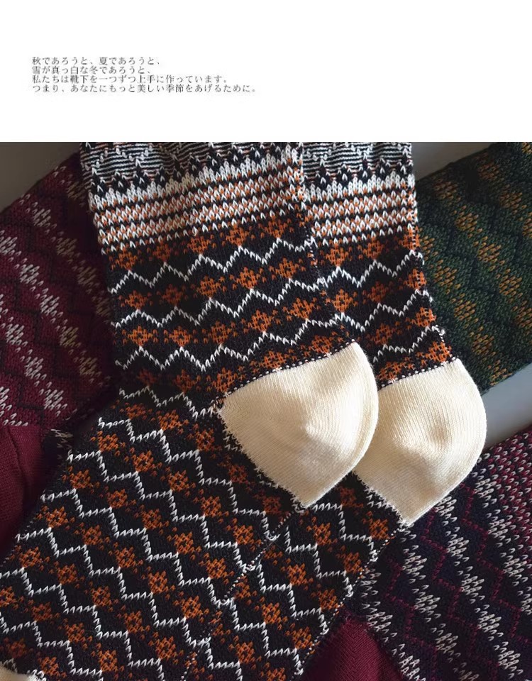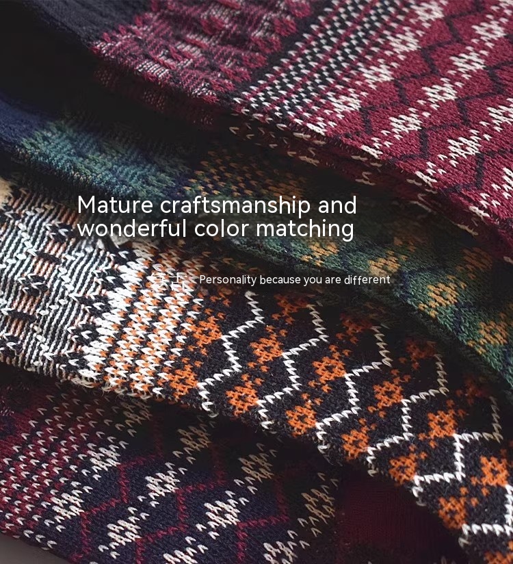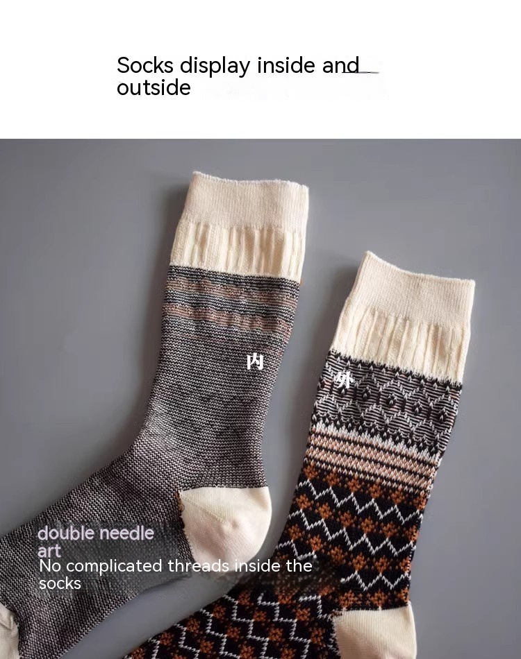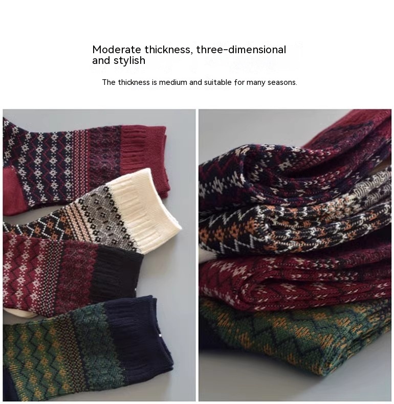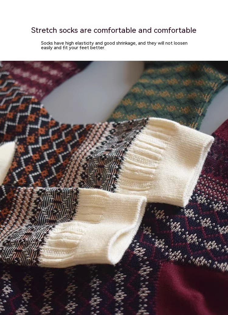 Mid Length Double Needle Christmas Artistic Retro Ethnic Style Long Socks