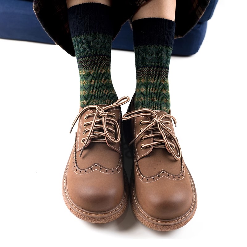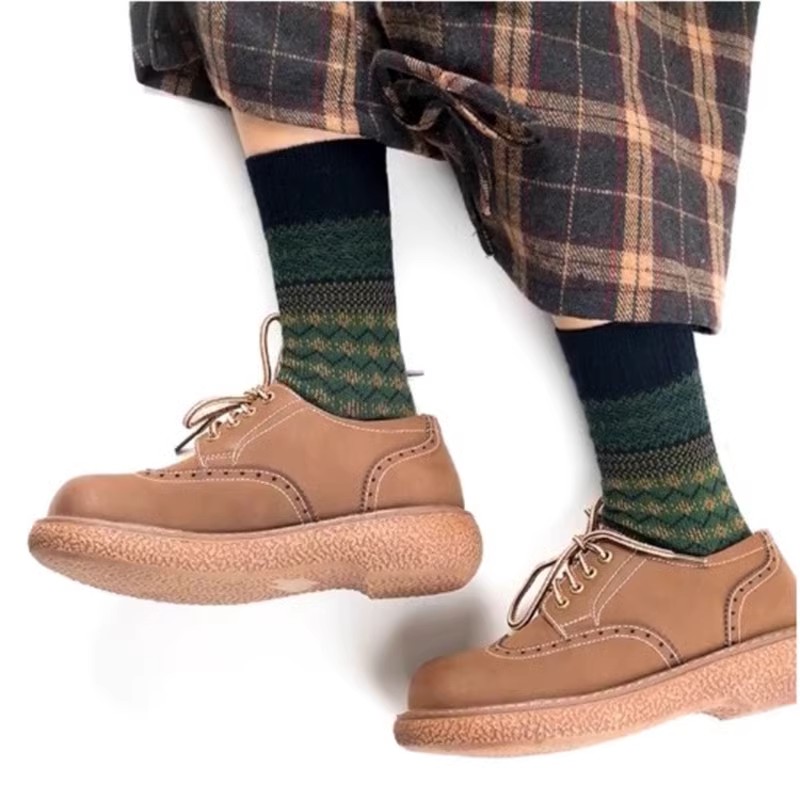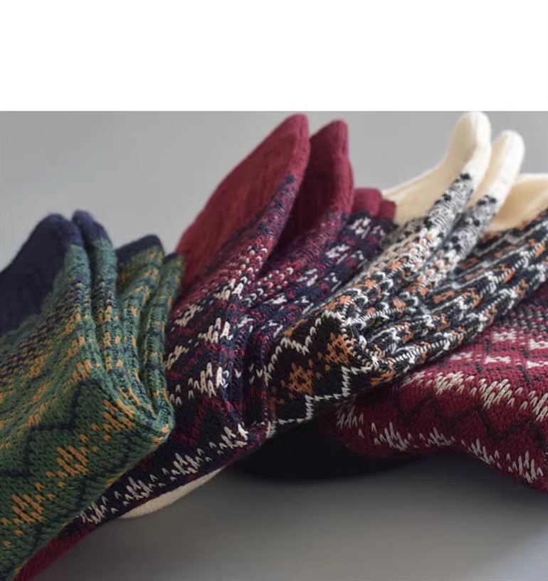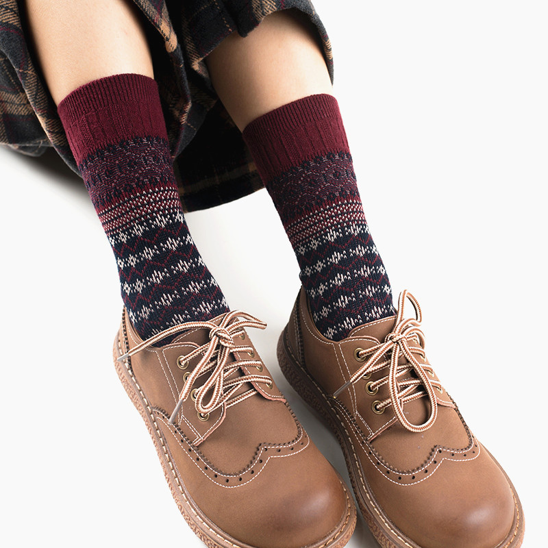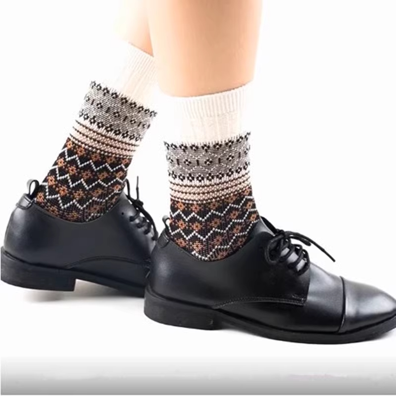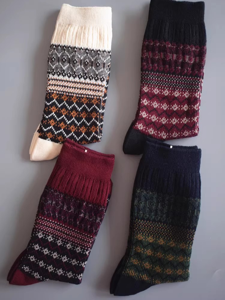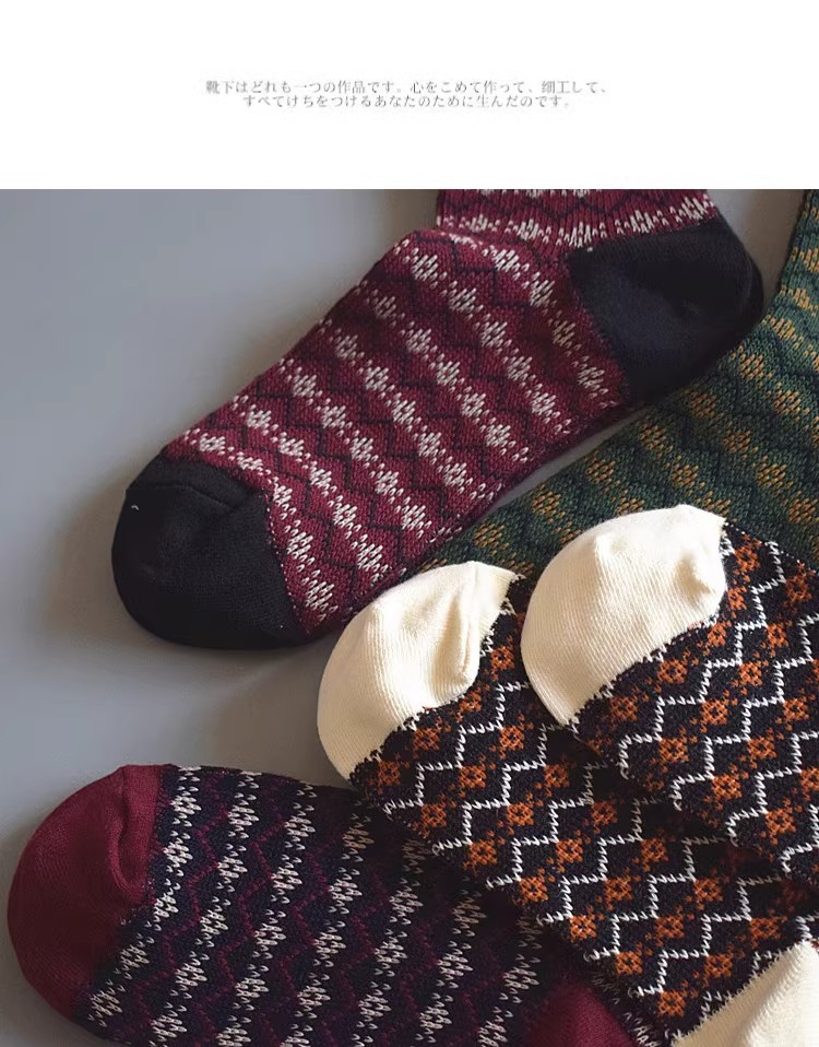 Mid Length Double Needle Christmas Artistic Retro Ethnic Style Long Socks