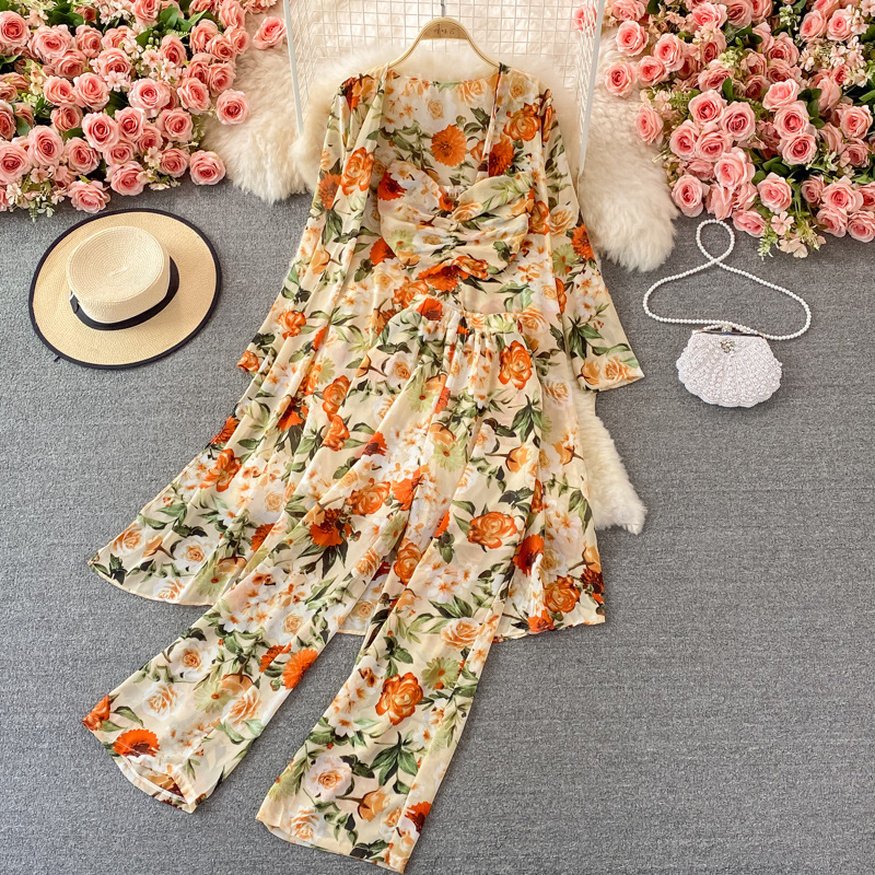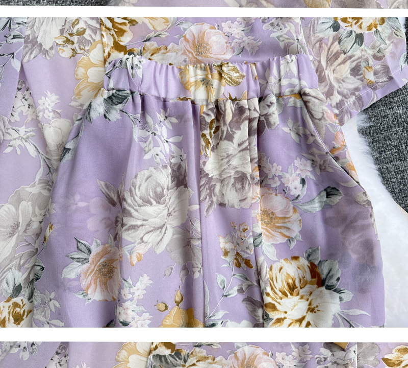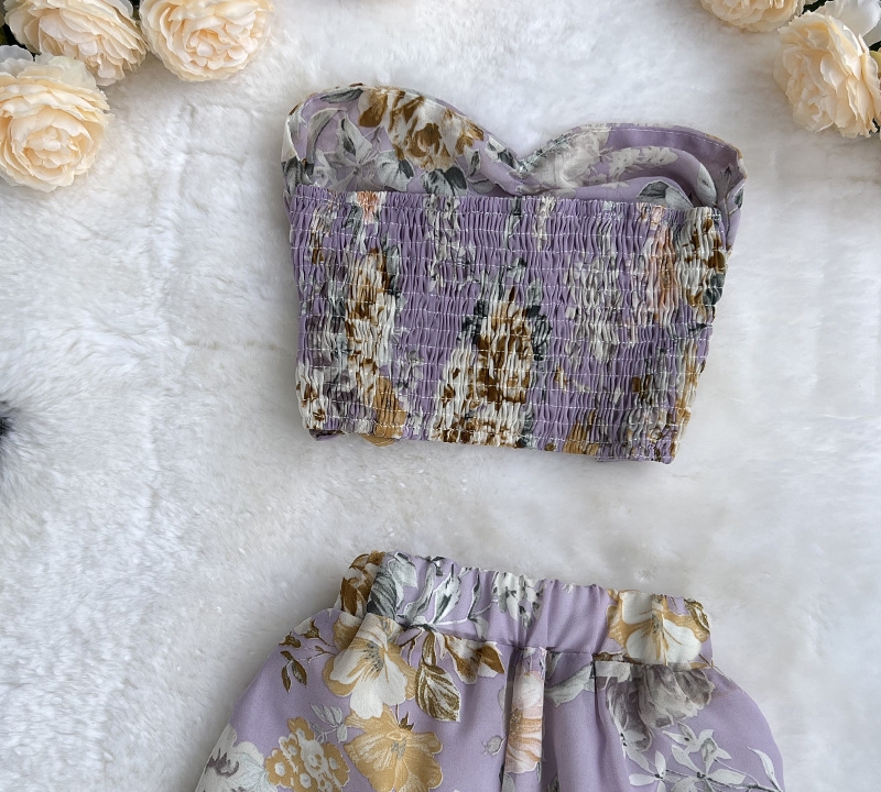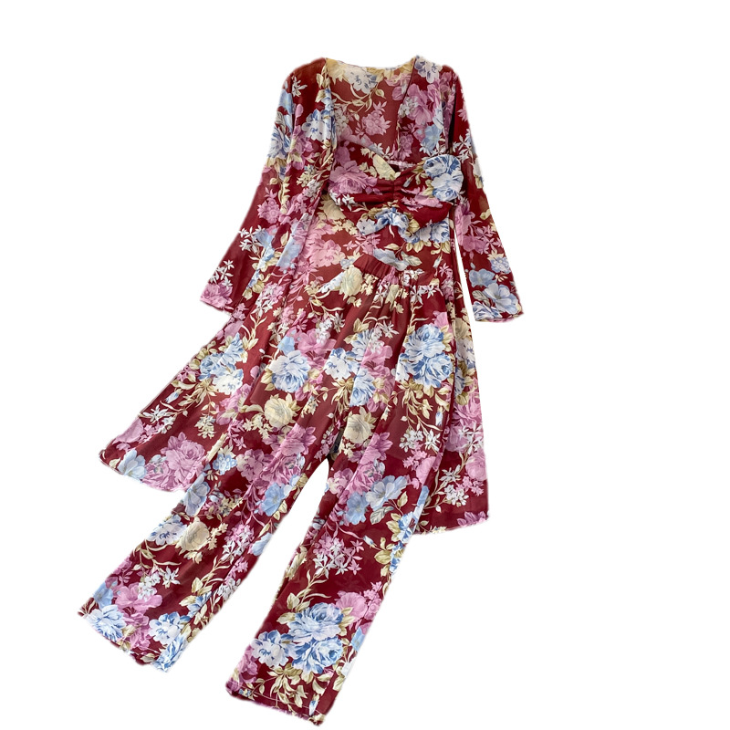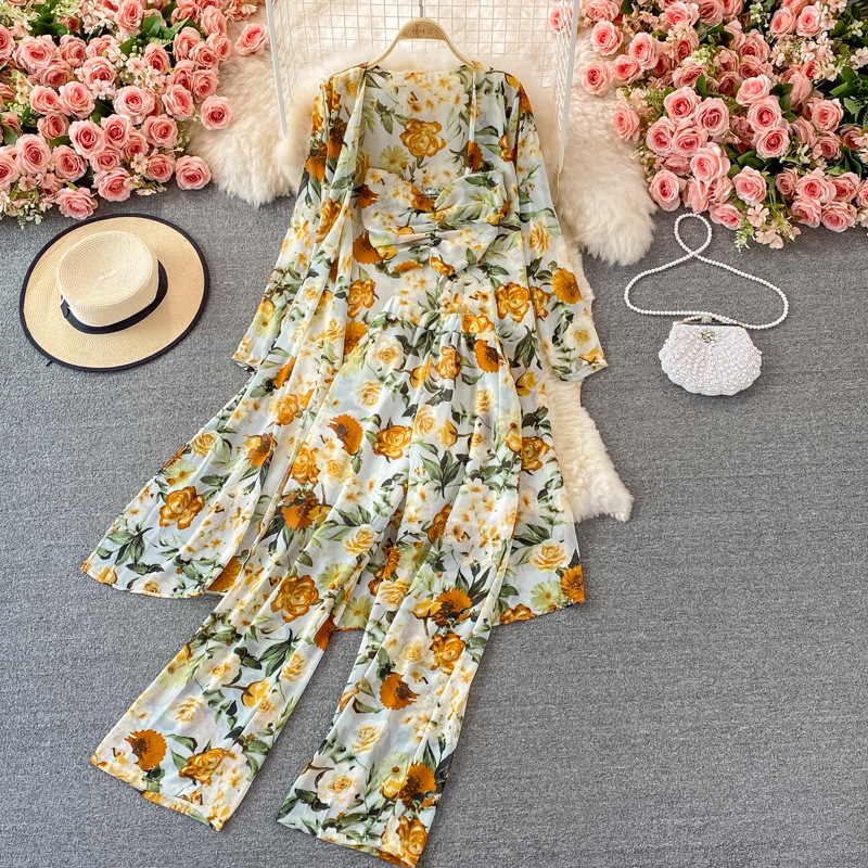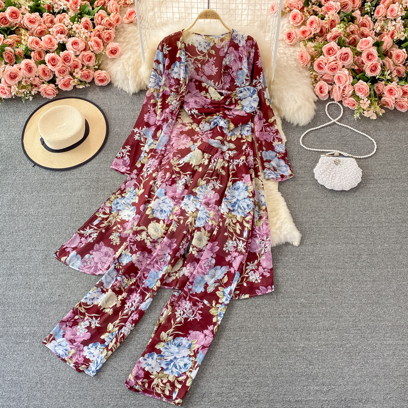 Mid-length Floral Chiffon Cardigan Three-piece Set Tube Top Short Type
