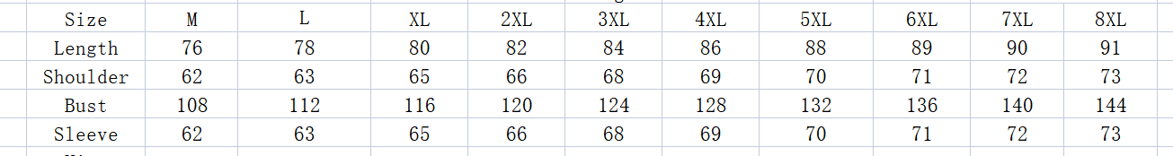 Size: M, L, XL, 2XL, 3XL, 4XL, 5XL, 6XL, 7XL, 8XL