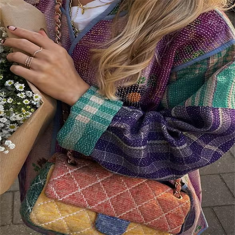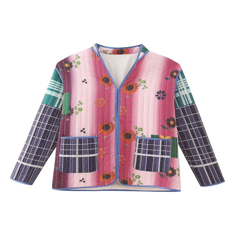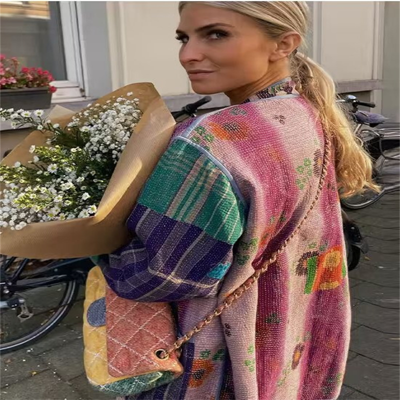 Mid-length Multicolor Printing Cotton Coat Jacket Women