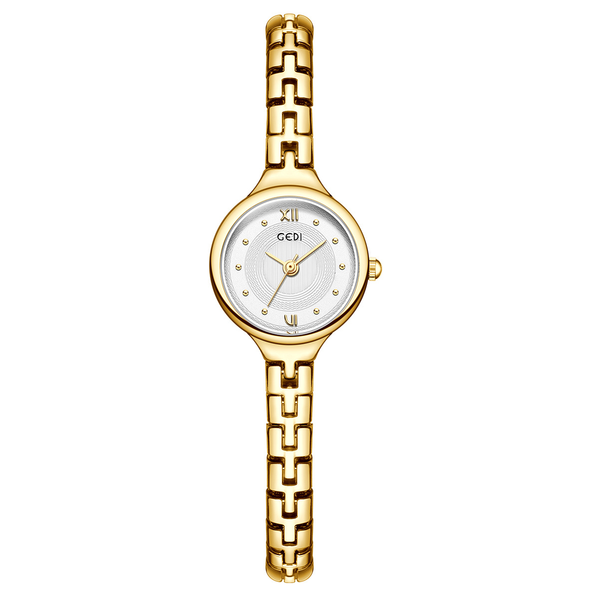 Color: Gold case, gold dial, gold strap; gold case, white dial, gold strap