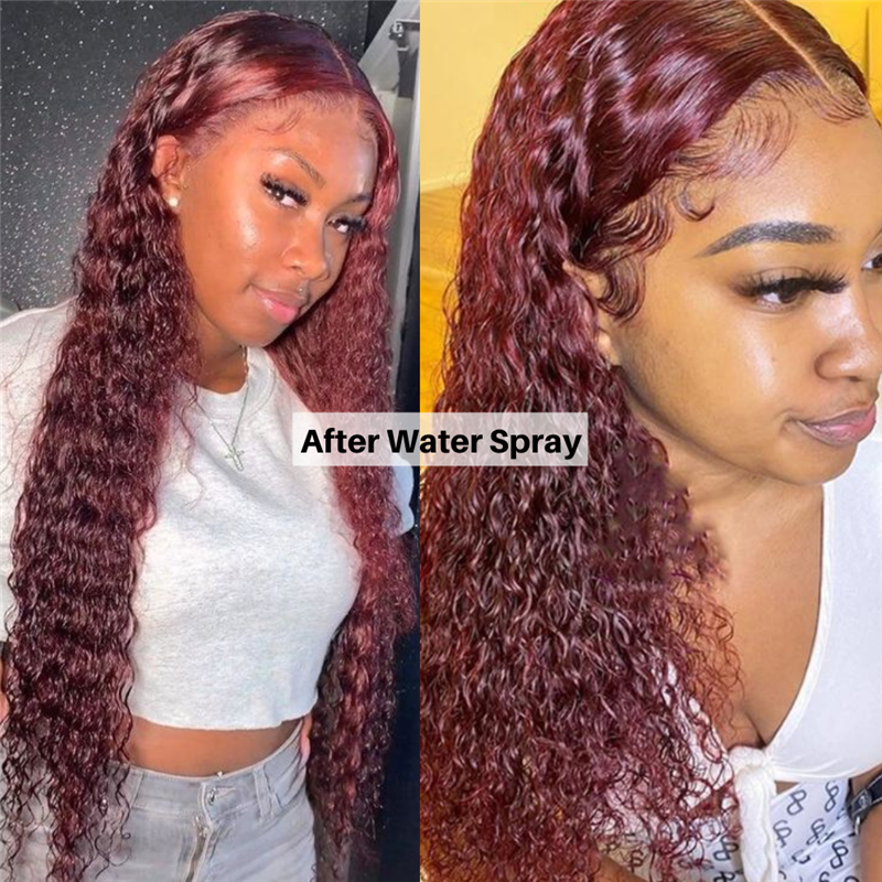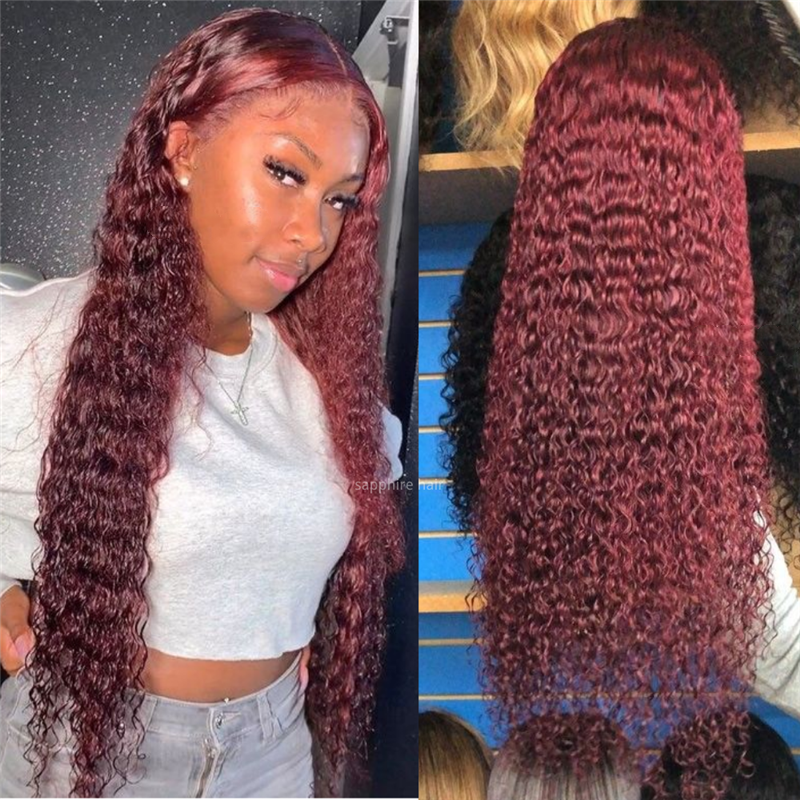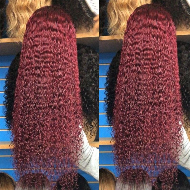 Mid-section Red Burgundy Wavy Long Curly Hair Wig Set