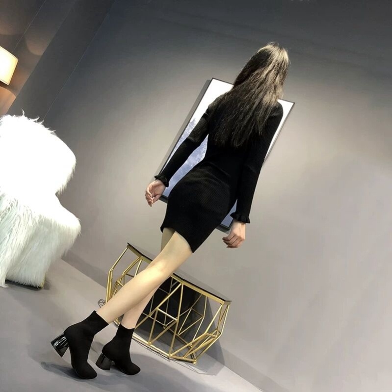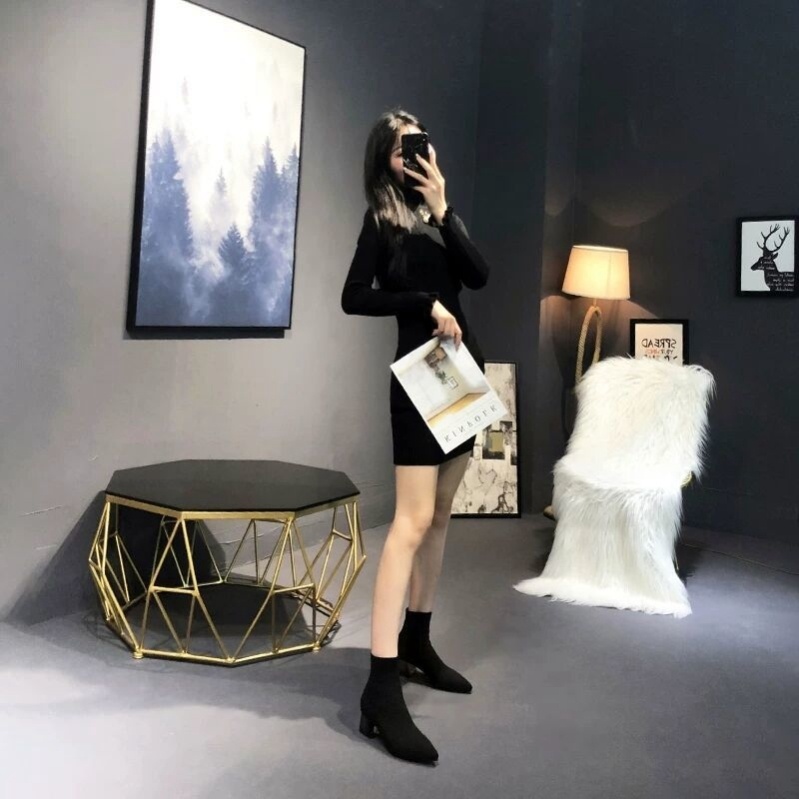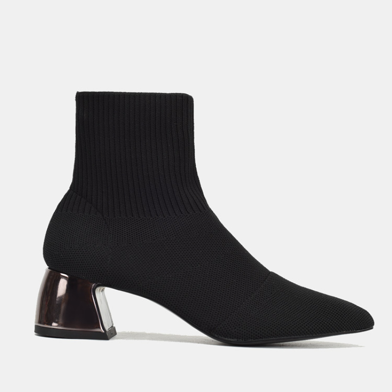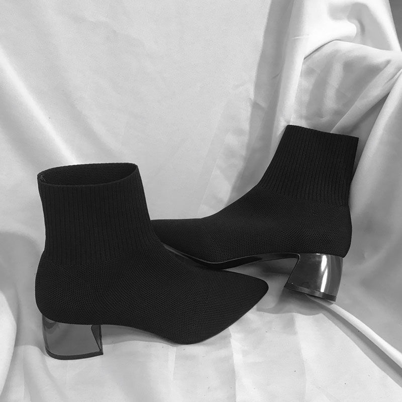 Mid-tube pointed toe stretch ankle boots