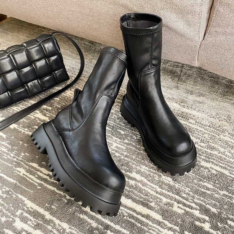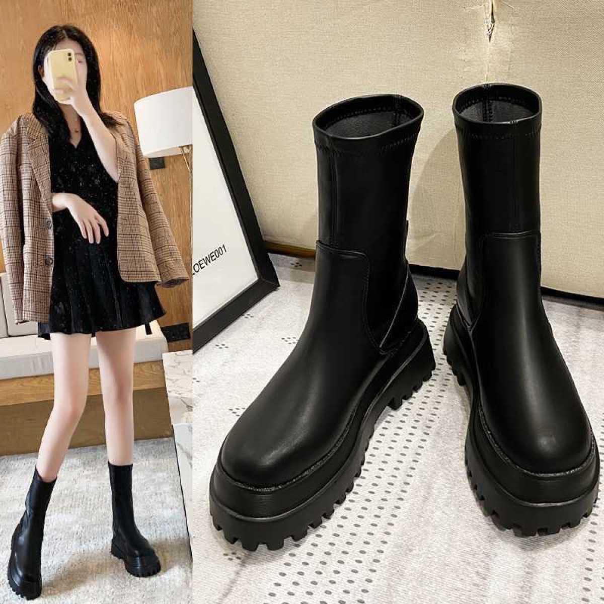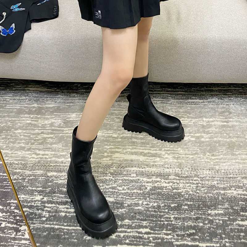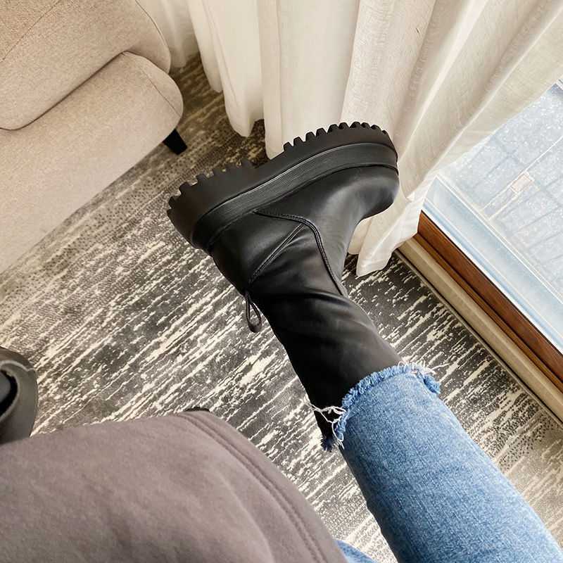 Mid Tube Thick Sole Heightening Ins British Short Boots