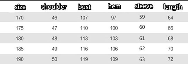 Size: 170,175,180,185,190