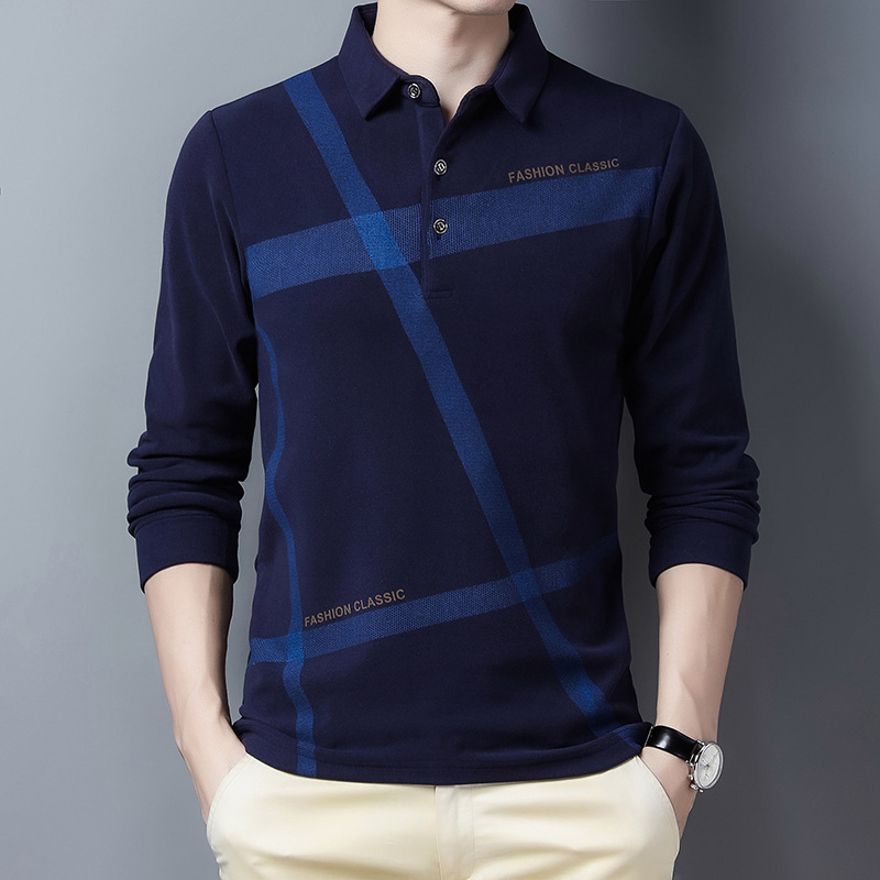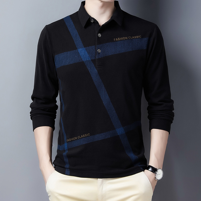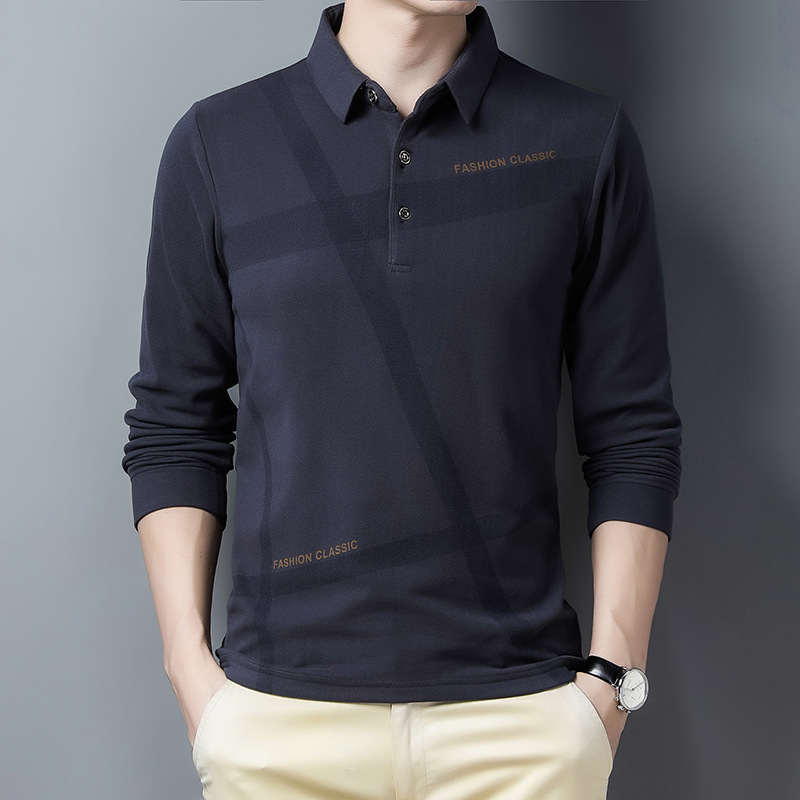 Middle-aged And Elderly Men's Long-sleeved T-shirt With Lapel Collar