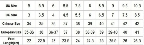 Sizes: 35, 36, 37, 38, 39, 40, 41, 42, 43, 44, 45