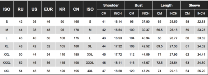 Size: 165,170,175,180,185