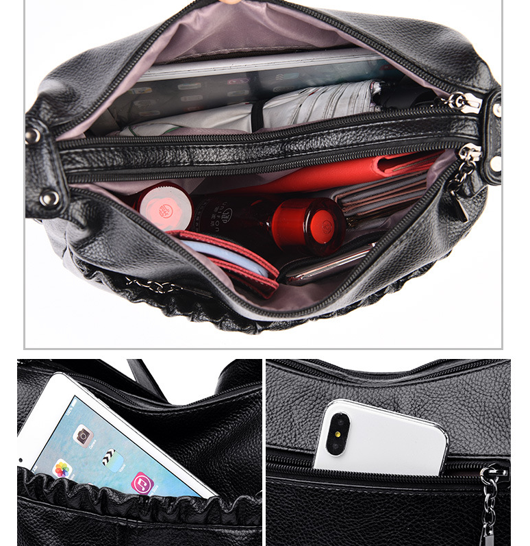 The internal structure of the bag: zipper pocket, mobile phone bag, document bag, sandwich zipper bag