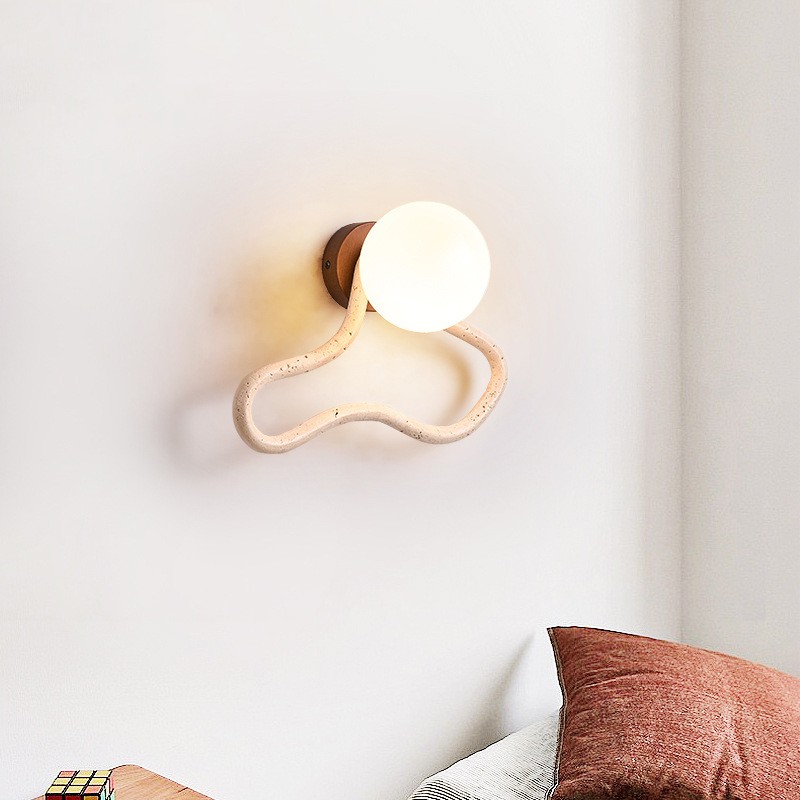 Material: M white travertine glass lampshade solid wood base