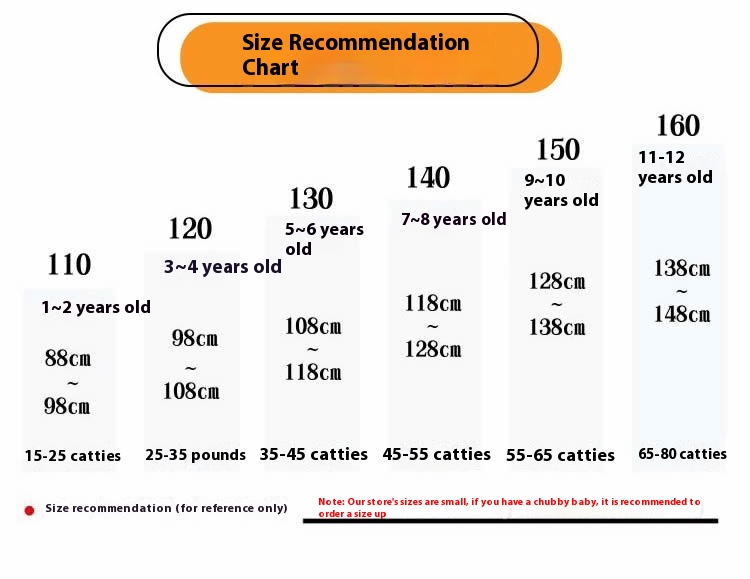 Suitable height: 120 yards: (height below 1 m),130 yards: (height below 1 m 2),140 yards: (height below 1 m 3),150 yards: (height below 1.4 m),160 yards: (height below 1.5 m)