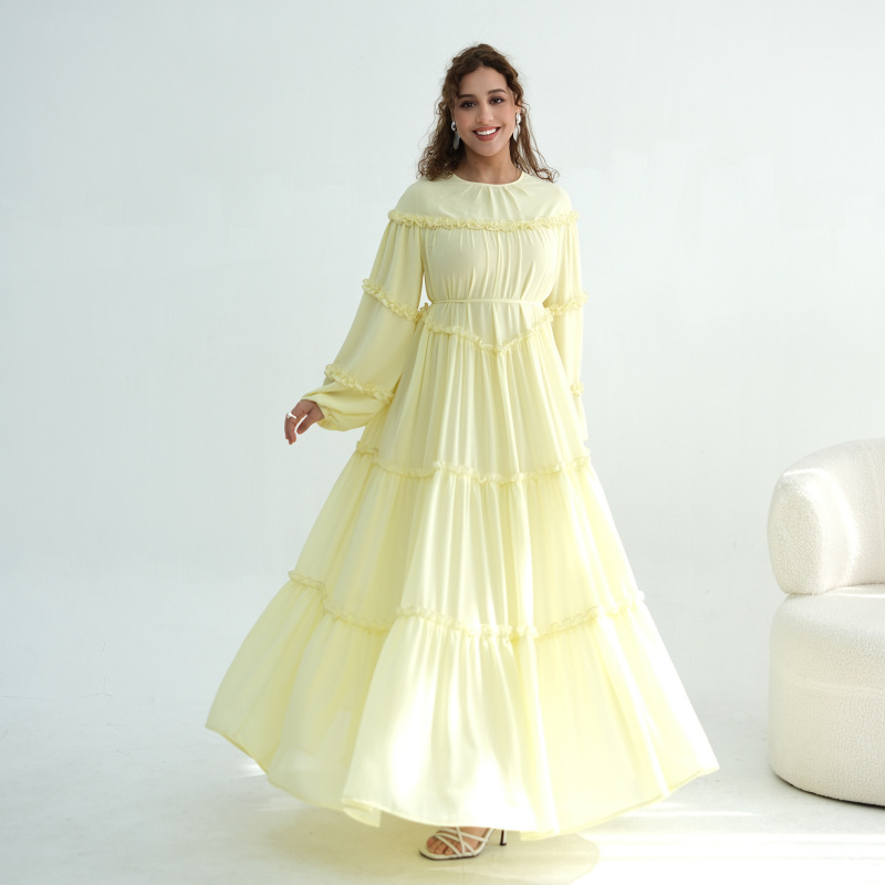 Colors: Black dress, pink dress, yellow dress, coffee-colored dress