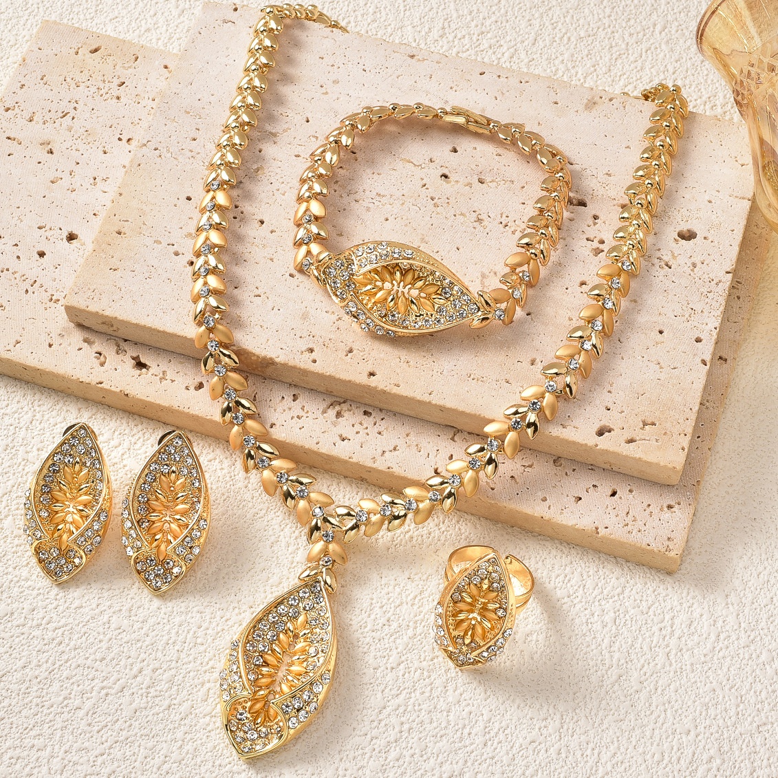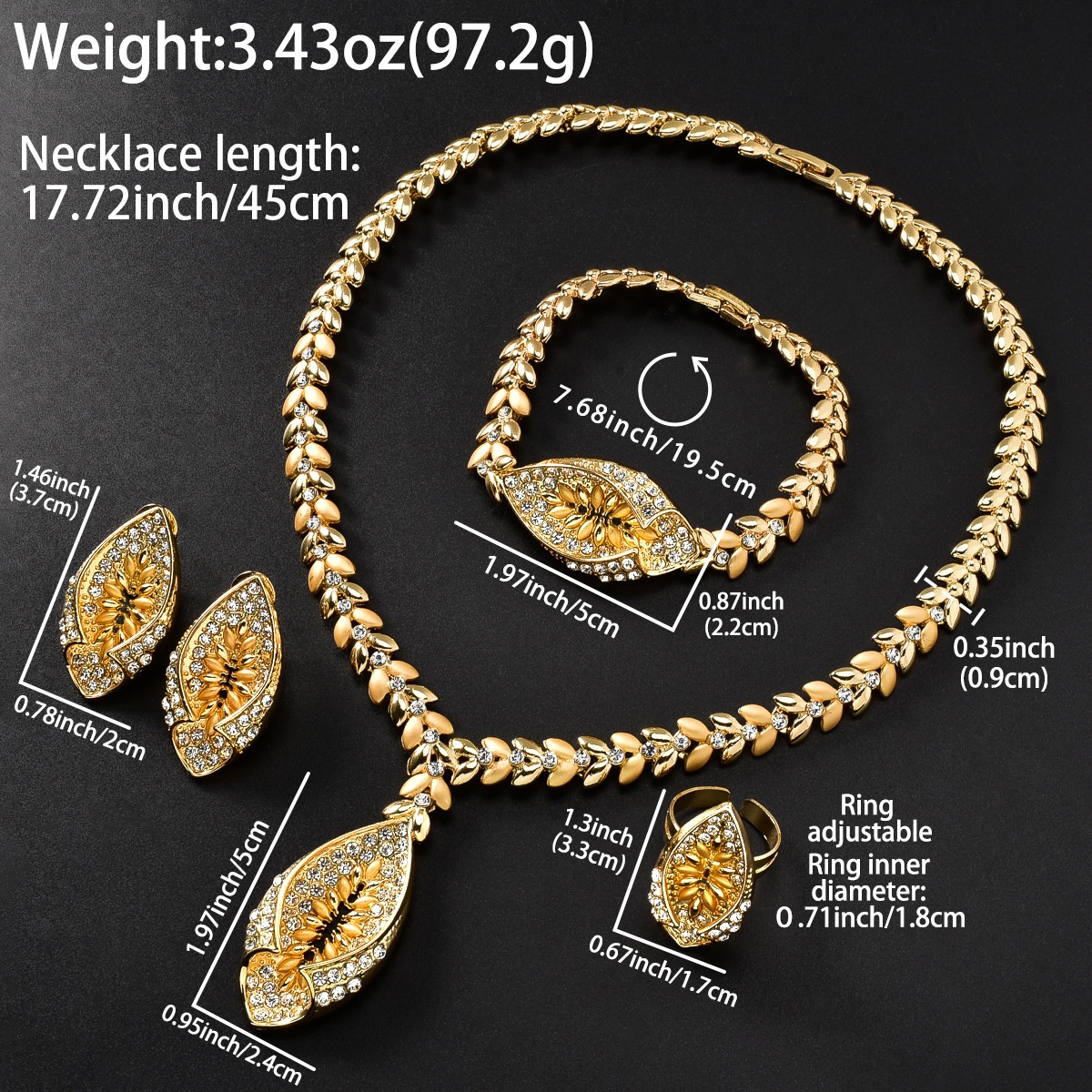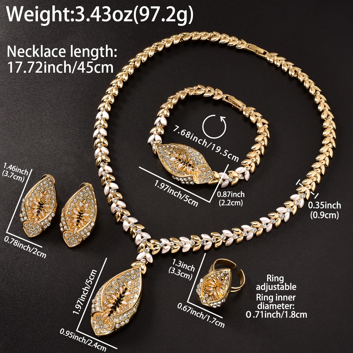 Necklace * 1+Bracelet * 1+Ring * 1+Earrings * 1 Pair