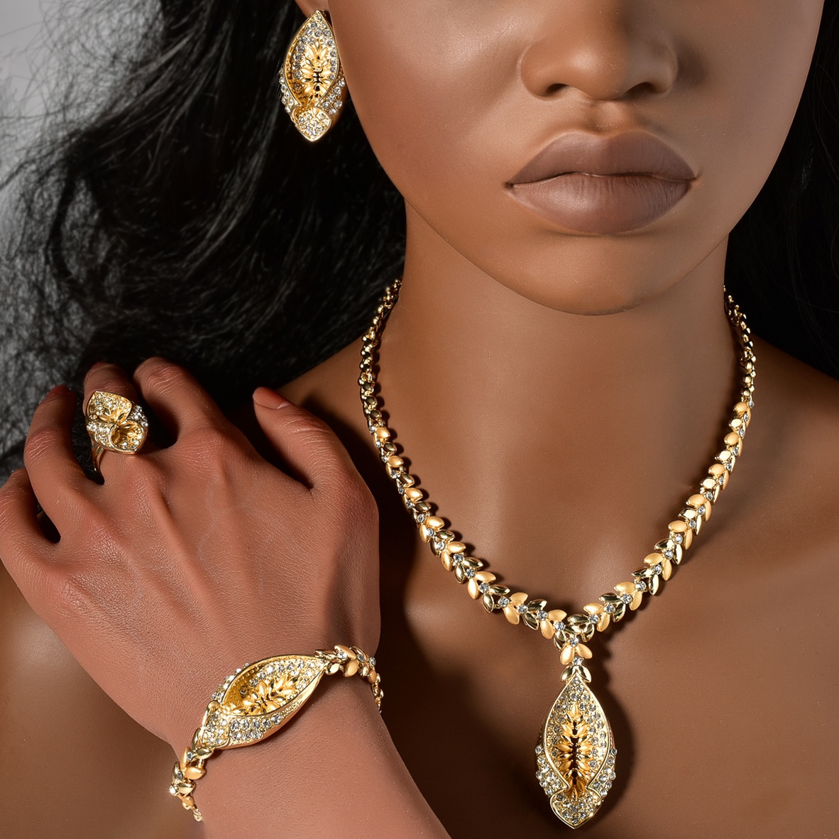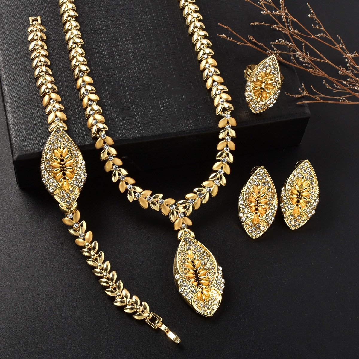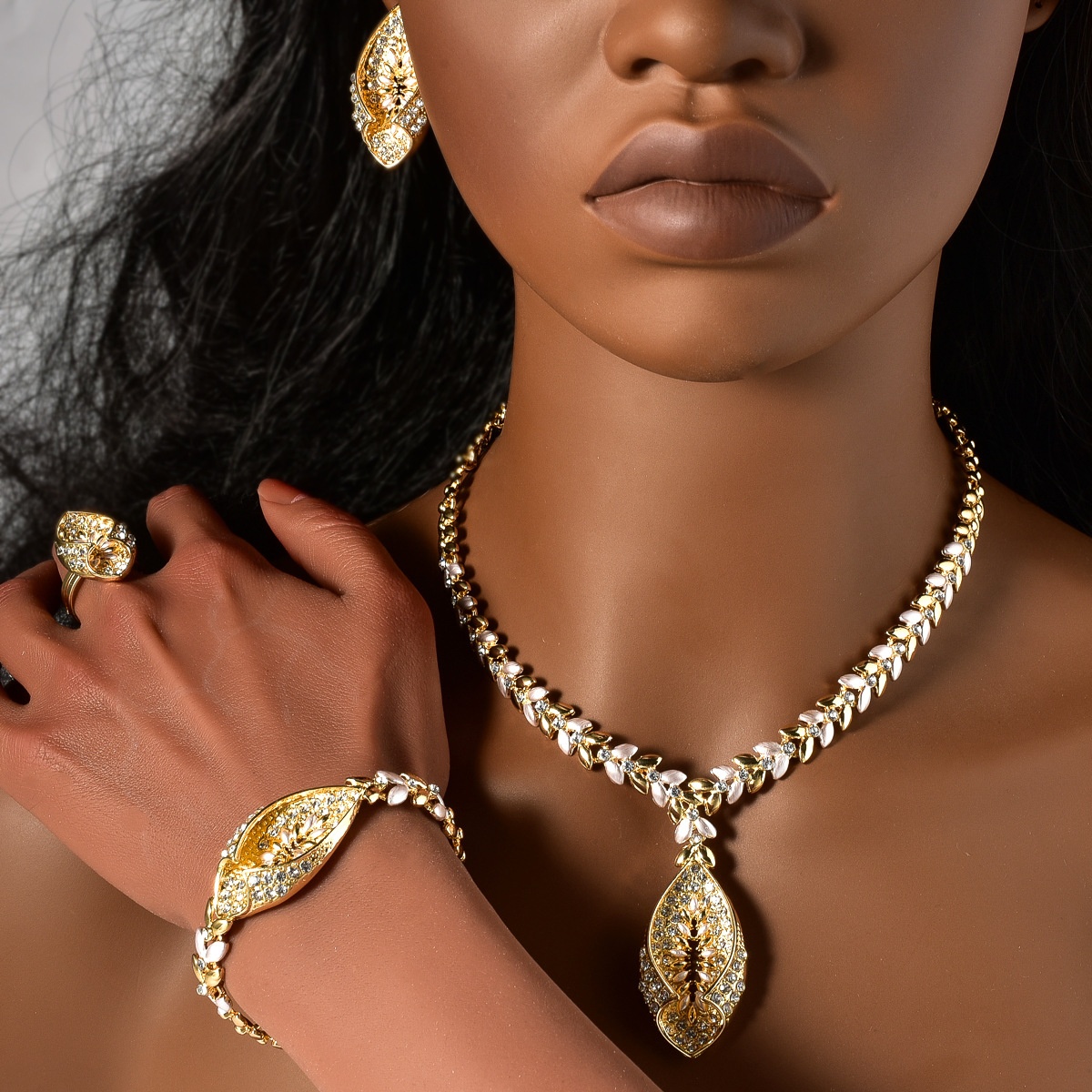 Necklace * 1+Bracelet * 1+Ring * 1+Earrings * 1 Pair