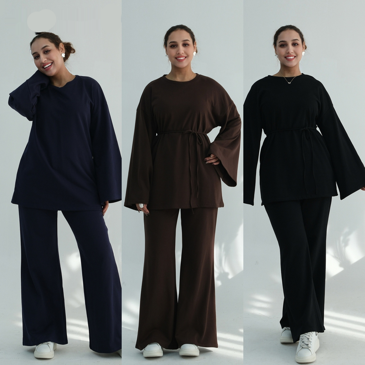 Middle Eastern-style Minimalist And Elegant Long-sleeve Wide-leg Pants Set