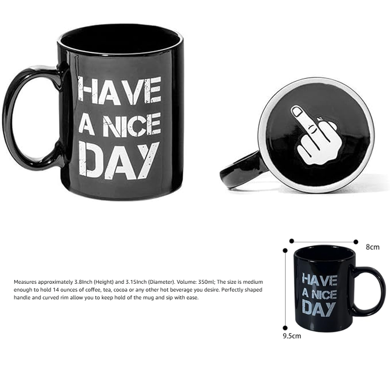 4.FUNNY GIFT IDEAS: This have a nice day coffee mug with a middle finger bottom is the most popular mug because it’s fun, humorous and awesome. It is a special Valentines Day gift for your friends, family, lovers and other person.