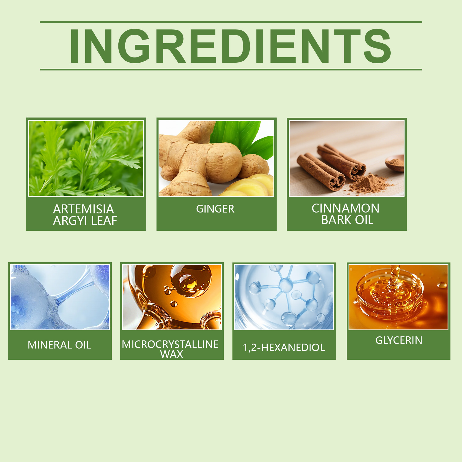 Ingredients: Active ingredients: Folium Artemisiae Argyi, ginger, cinnamon oil.