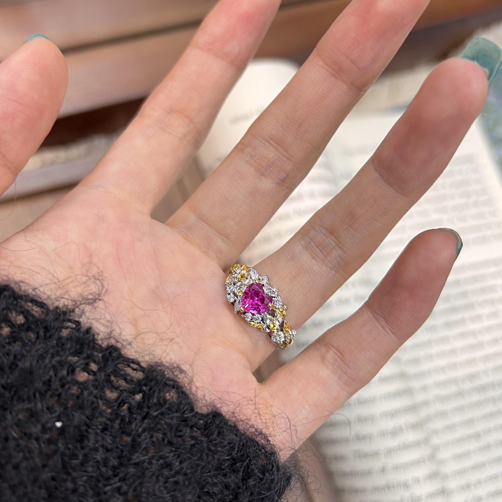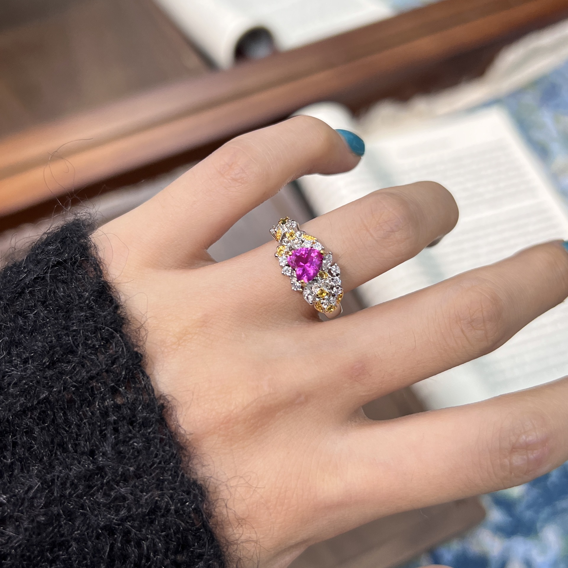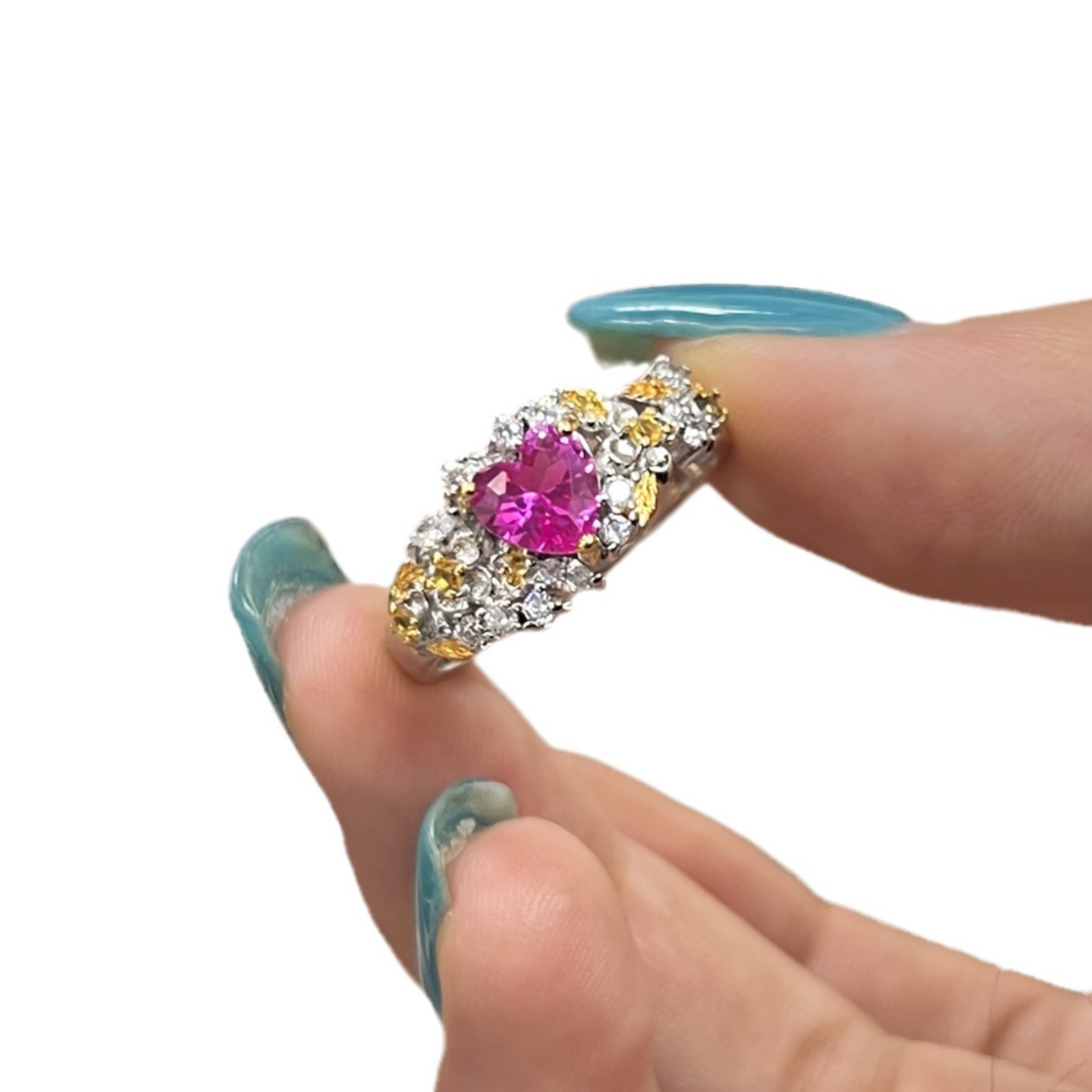 Color: Flower pink heart-shaped ring