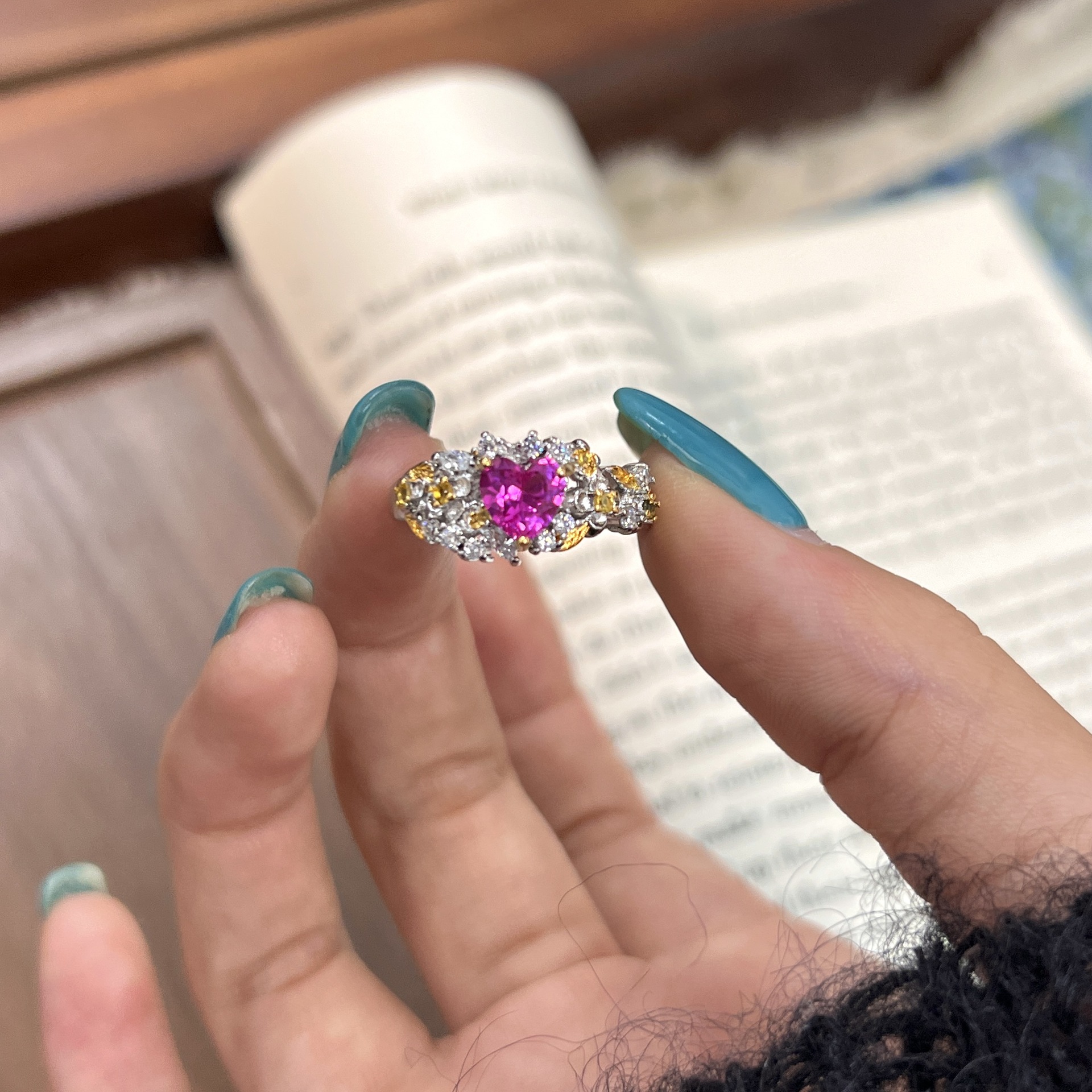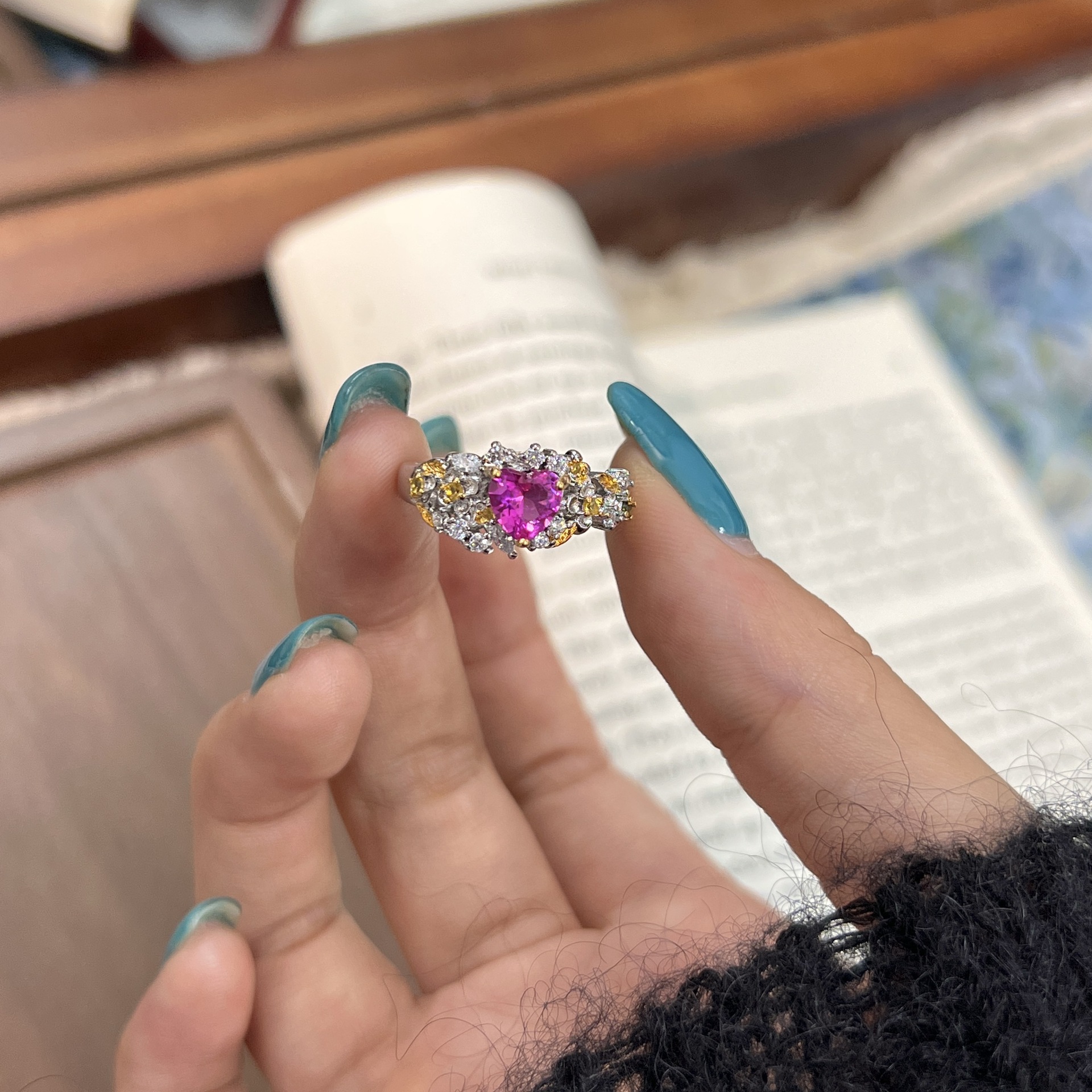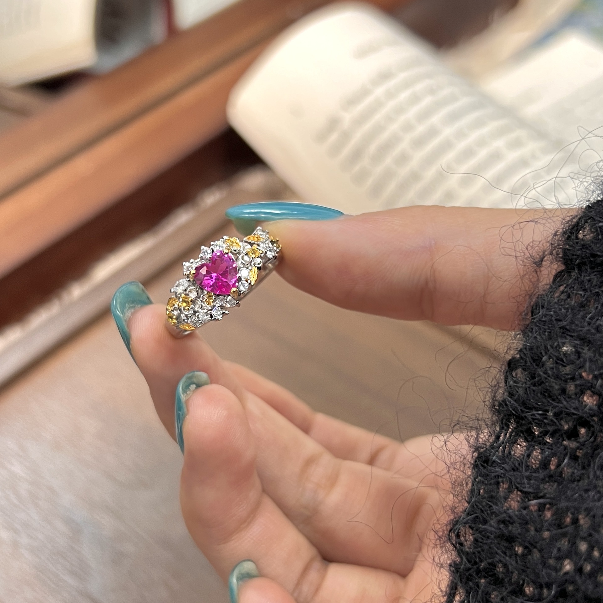 Color: Flower pink heart-shaped ring