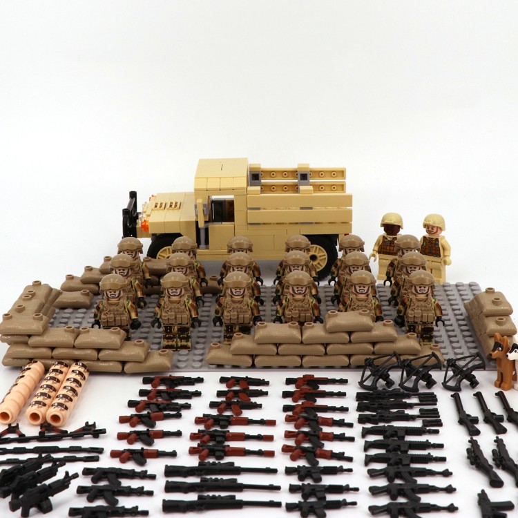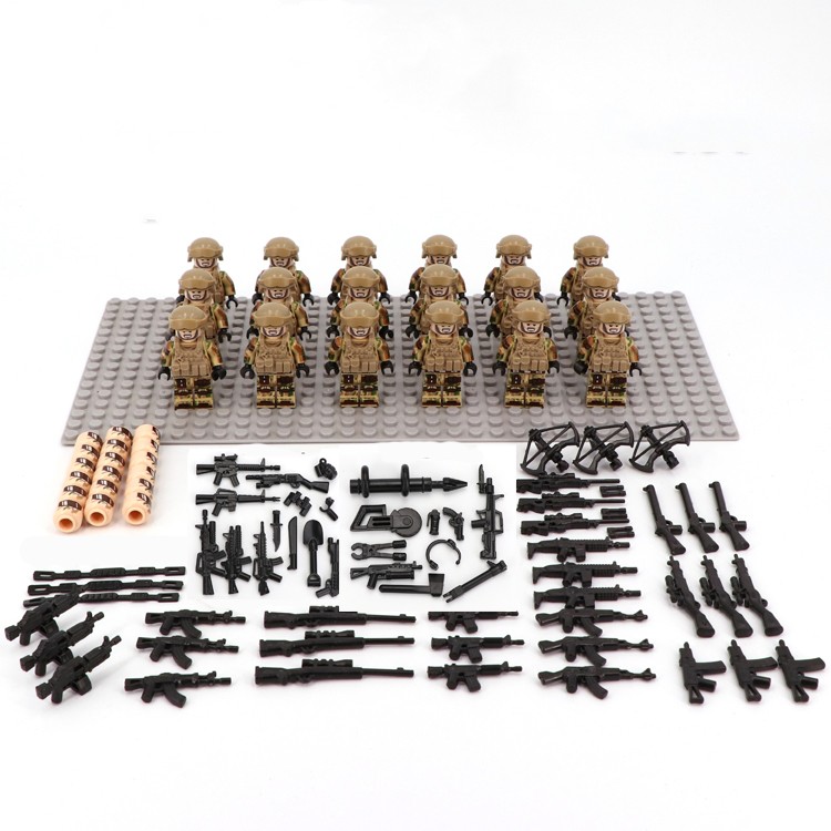 The US Army 18 people delivery floor weapons by the fire broken soldier desert team G group