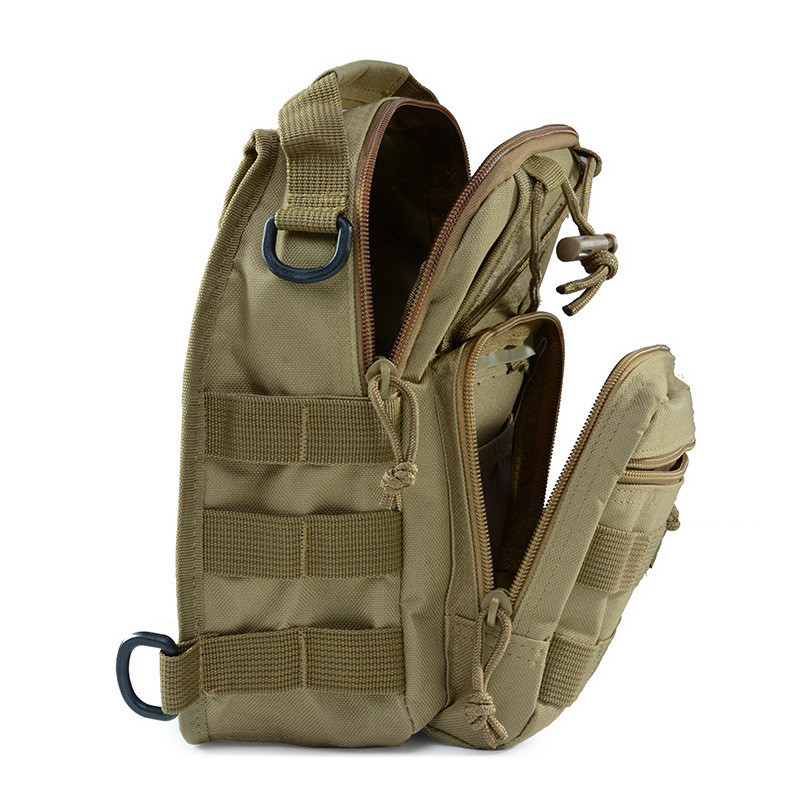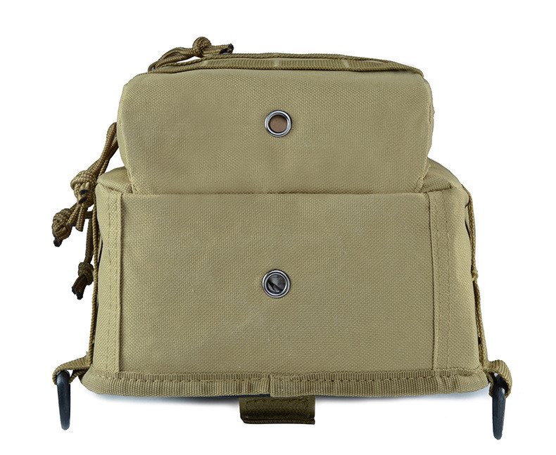 This small booby-bag design is designed with a single shoulder slope and can be taken as a handbag with a MOLLE system on the front and left sides of the main bag, which can be mounted with all kinds of accessories with MOLLE system. The outer layer of the main bag is equipped with the x-type quick fetching system of the magic post and umbrella rope, which can be pasted or fixed in a magazine, etc., which is convenient and practical.