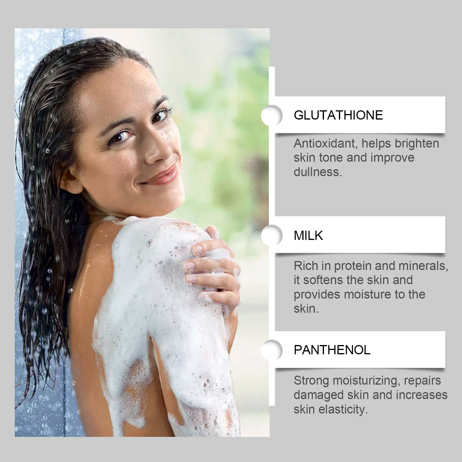 Ingredients: glutathione, milk, ascorbic acid (vitamin C)