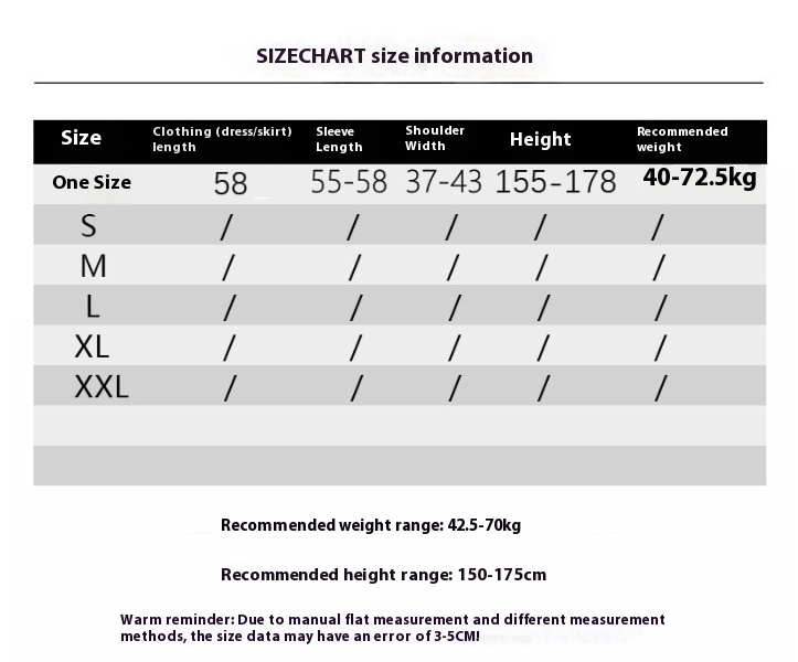 1. Asian sizes are 1 to 2 sizes smaller than European and American people. Choose the larger size if your size between two sizes. Please allow 2-3cm differences due to manual measurement. 2. Please check the size chart carefully before you buy the item, if you don't know how to choose size, please contact our customer service. 3.As you know, the different computers display colors differently, the color of the actual item may vary slightly from the following images.