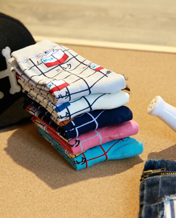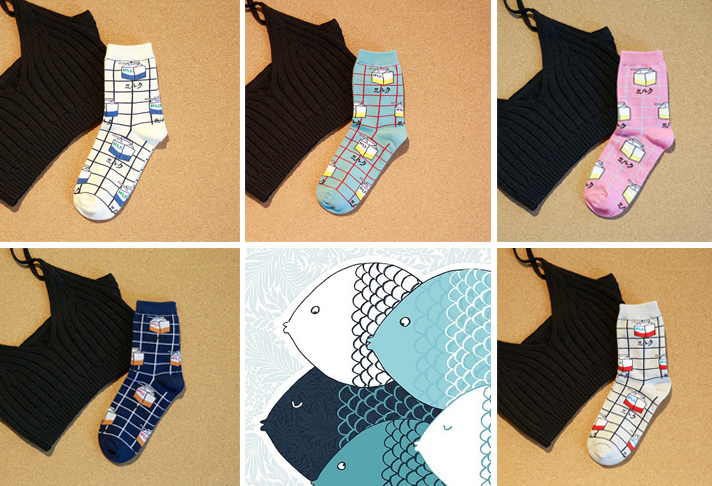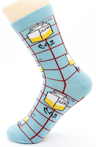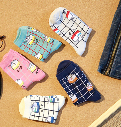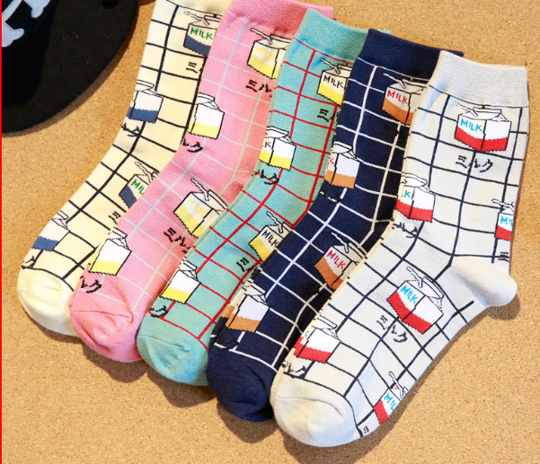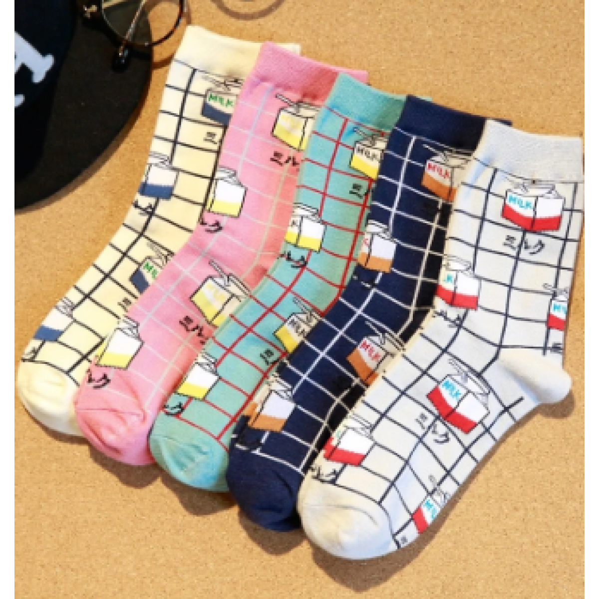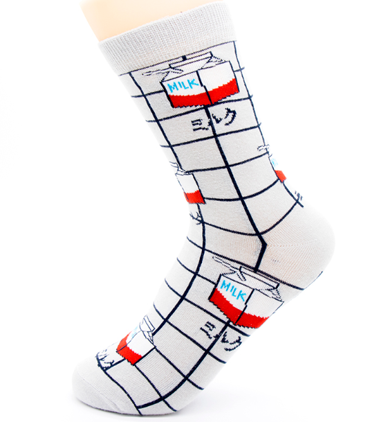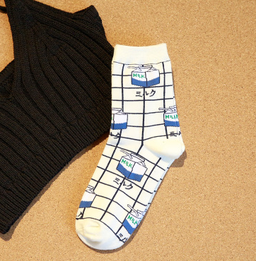 Miruku grid socks with a ribbed banded cuff. Perfect for the milk lovers!