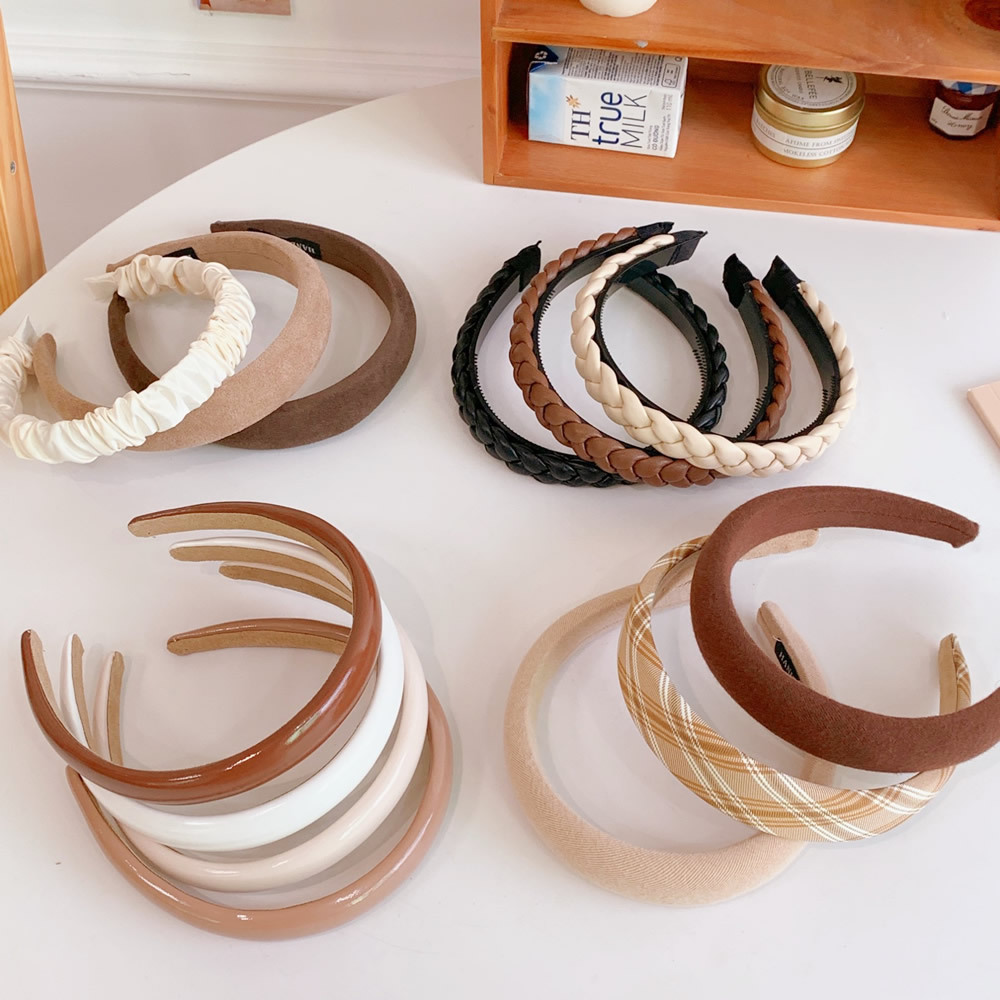 Color: 1# orange suede headband, 2# brown suede headband, 3# Milky White striped headband, 4# brown striped headband, 5# Milky White headband, 6# beige stripes headband, 8# dark brown striped headband, 9# brown headband, 10# brown headband, 7# brown plaid headband