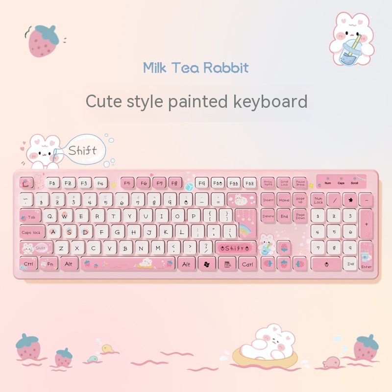 Color: [Wired Style single keyboard] K-011 milk tea rabbit-strawberry powder, [Wired Style single keyboard] K-012 milk tea rabbit-ice blue, [Wired Style single keyboard] K-013 milk tea rabbit-Platycodon grandiflorum purple, [Wired Style single keyboard] K-014 milk tea rabbit-argy wormwood Green, [Wired Style single keyboard] K-015 milk tea rabbit-Iris tectorum Blue, [wireless type single keyboard] K-011 milk tea rabbit-strawberry powder, [Wireless type single keyboard] K-012 milk tea rabbit-ice blue, [wireless type single keyboard] K-013 milk tea rabbit-Platycodon grandiflorum purple, [wireless type single keyboard] K-014 milk tea rabbit-argy wormwood green, [Wireless type single keyboard] K-015 milk tea rabbit-Iris tectorum Blue, [Bluetooth single keyboard] K-011 milk tea rabbit-strawberry powder, [Bluetooth single keyboard] K-012 milk tea rabbit-ice blue, [Bluetooth single keyboard] K-013 milk tea rabbit-Platycodon grandiflorum purple, [Bluetooth single keyboard] K-014 milk tea rabbit-argy wormwood Green, [Bluetooth single keyboard] K-015 milk tea rabbit-Iris tectorum Blue